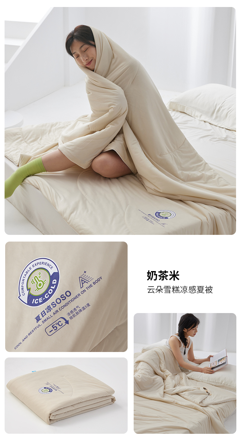 商品名称:亿梵家居2025春夏新款云朵雪糕凉感夏被夏凉被空调被 奶茶米
