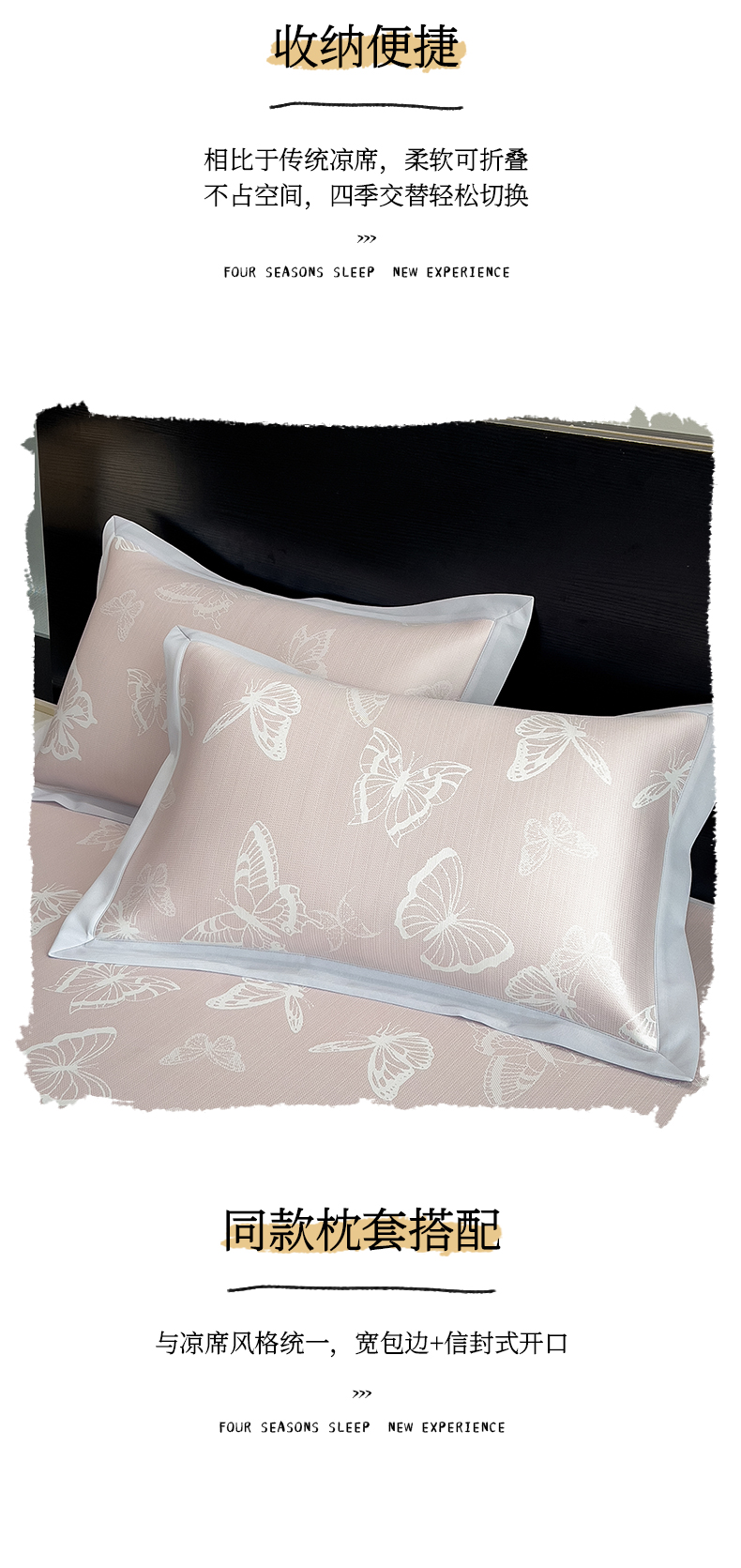 倾慕家纺 2025新款简约PE50提花凉感席席子凉席-床笠款 简蝶粉PE床笠款