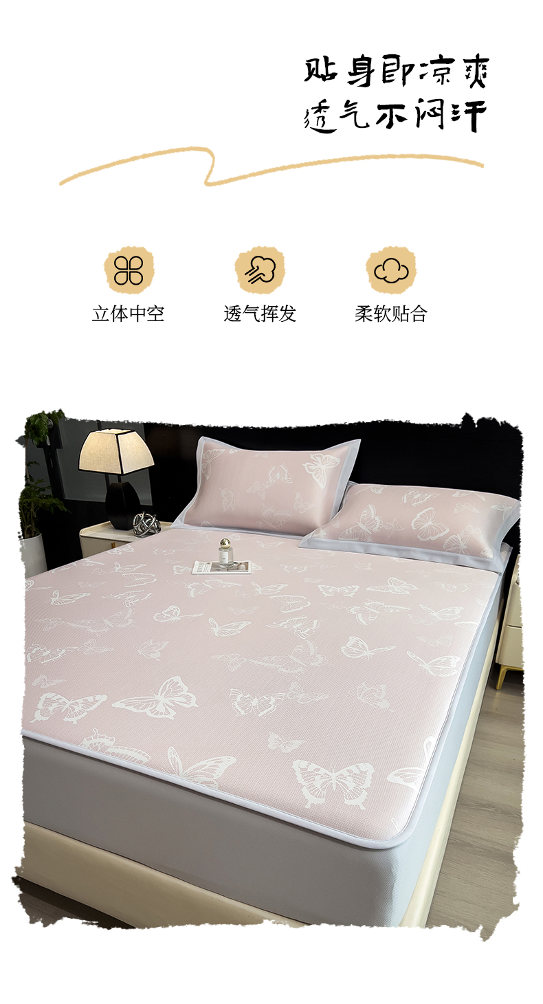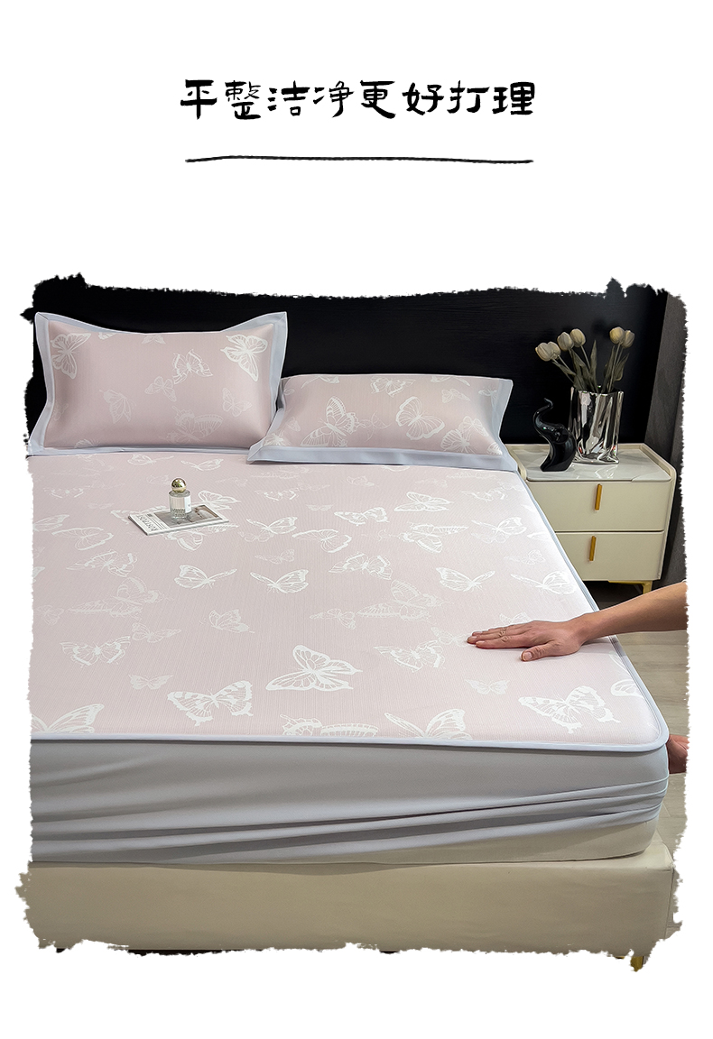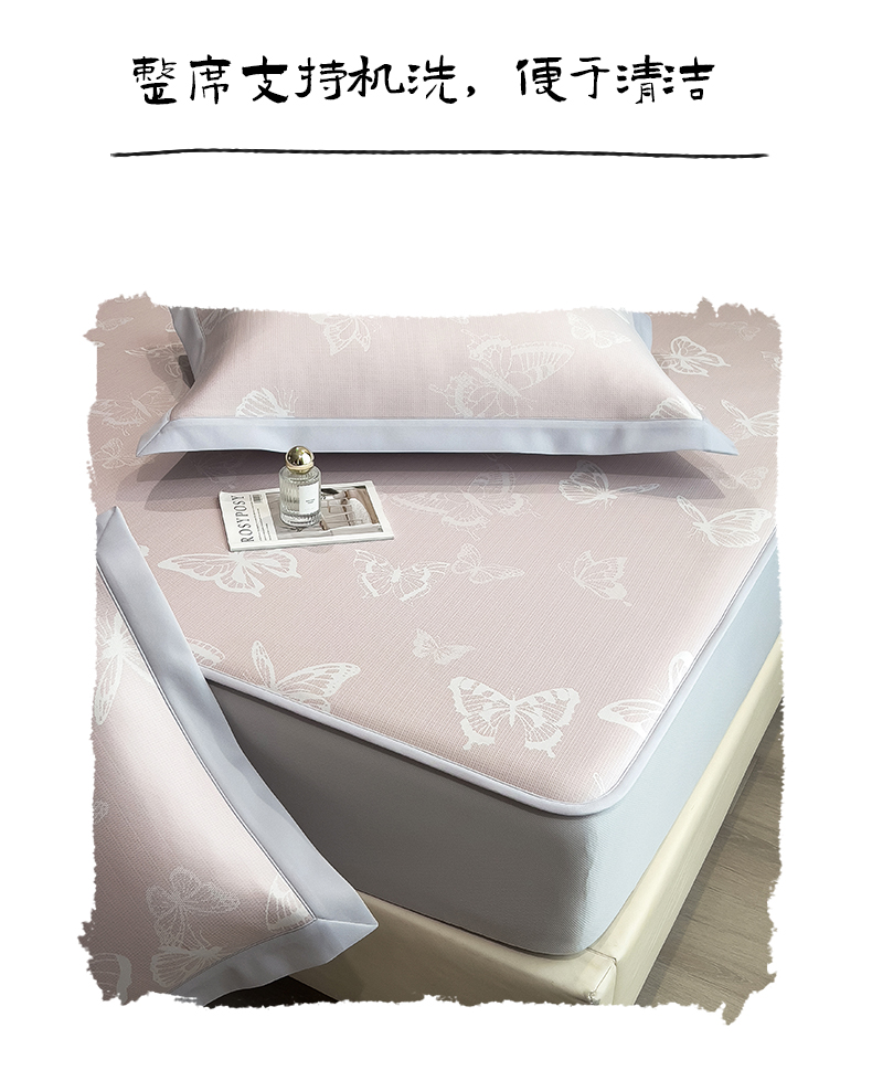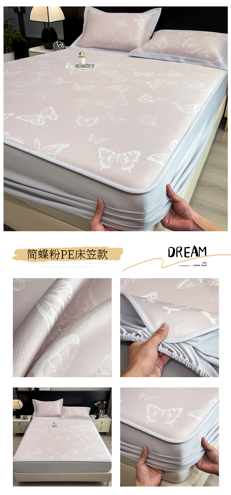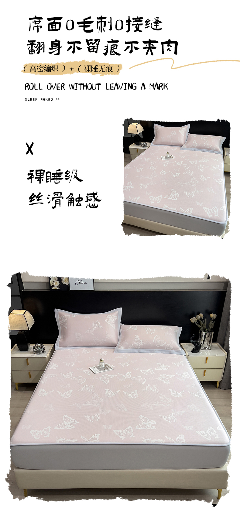 商品名称:倾慕家纺 2025新款简约PE50提花凉感席席子凉席-床笠款 简蝶粉PE床笠款