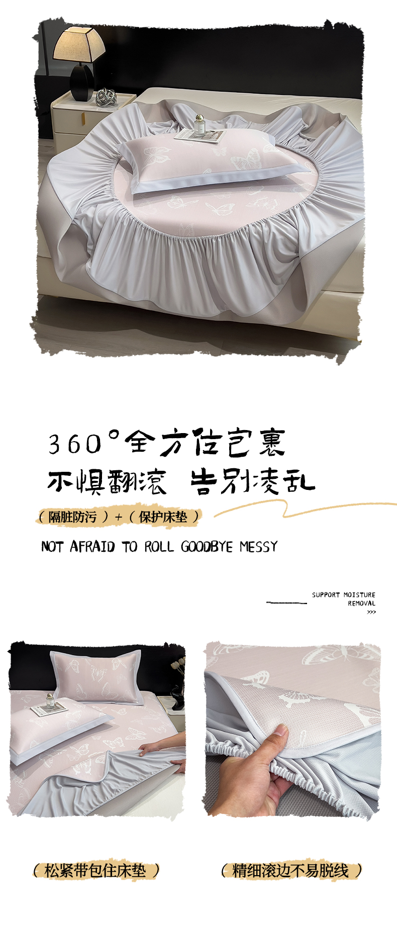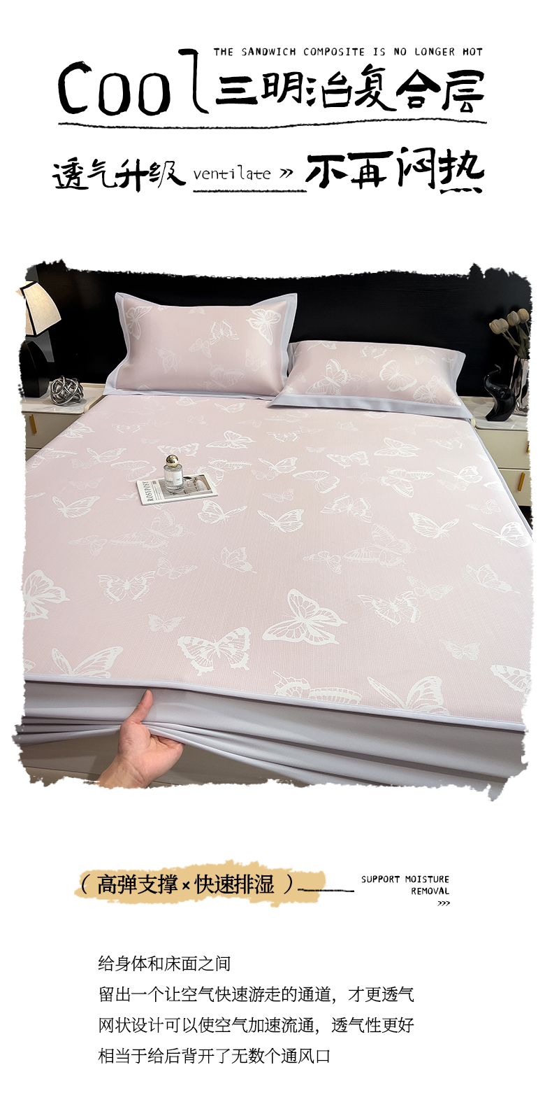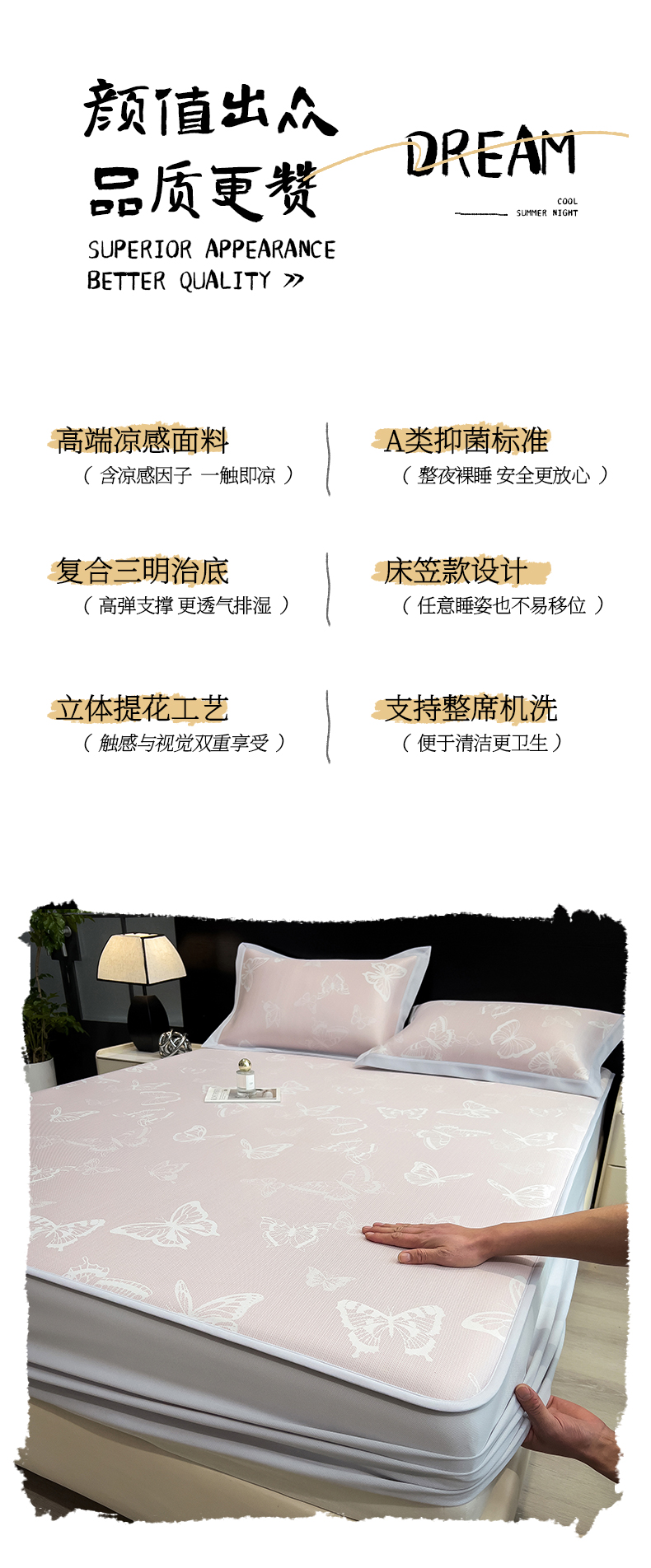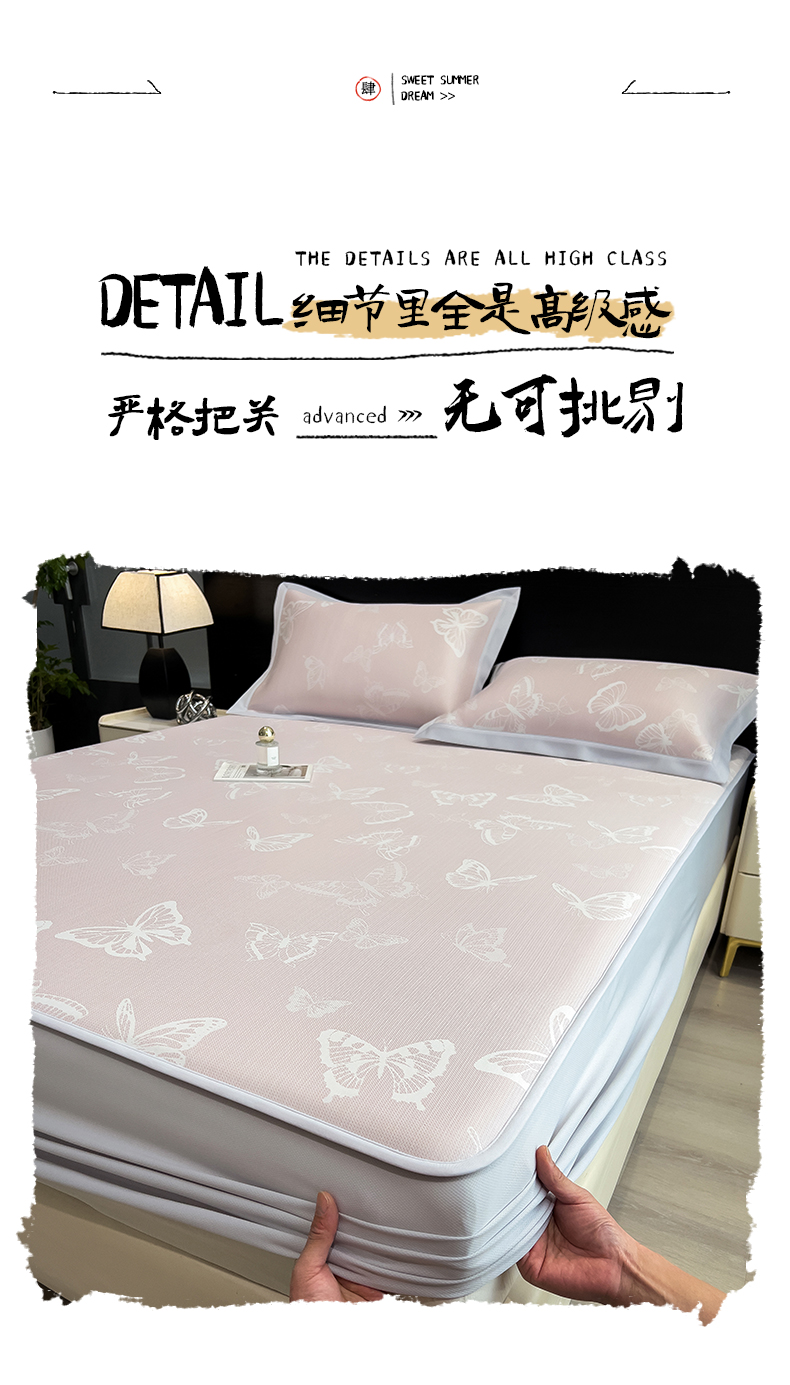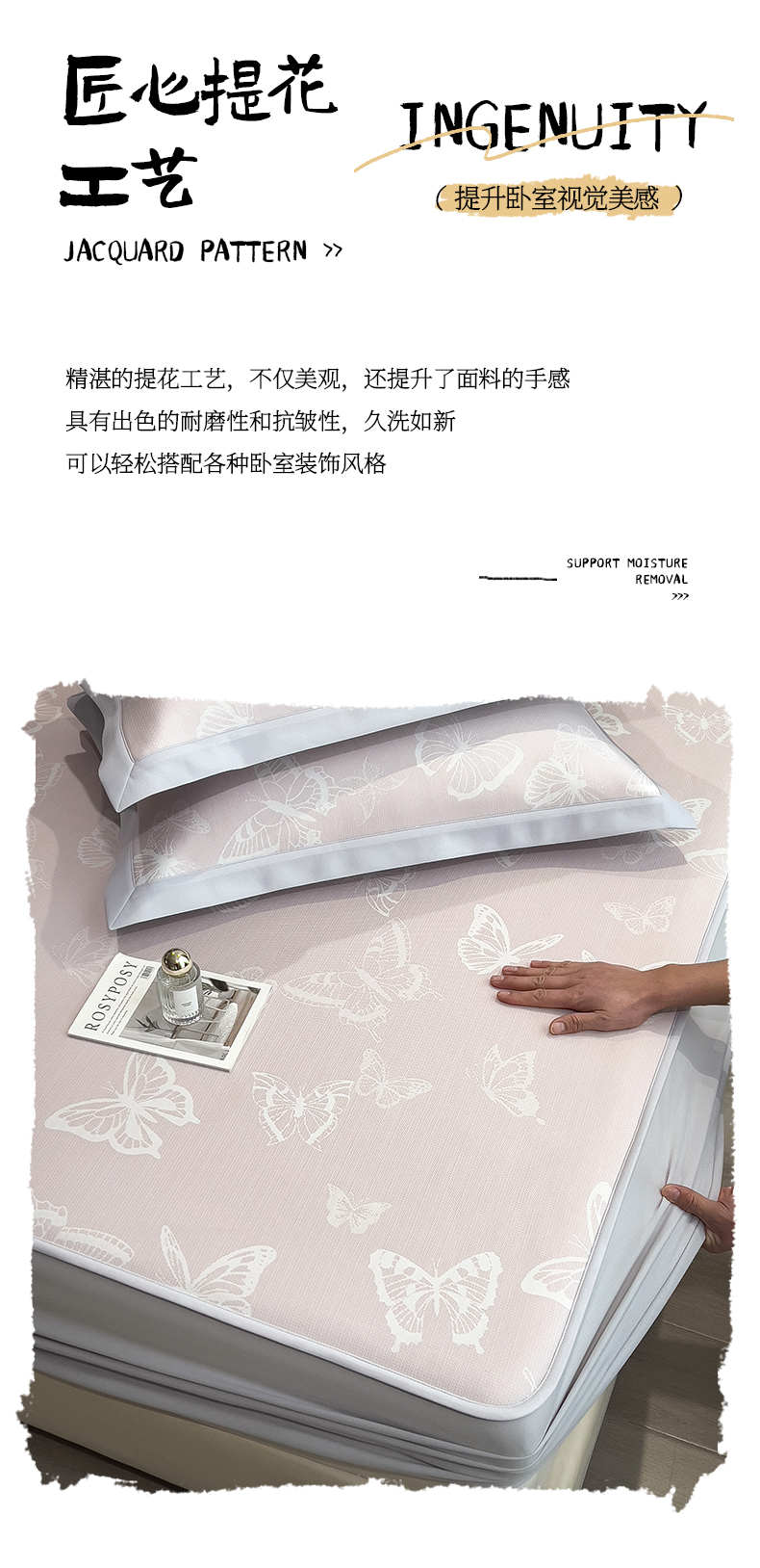 商品名称:倾慕家纺 2025新款简约PE50提花凉感席席子凉席-床笠款 简蝶粉PE床笠款
