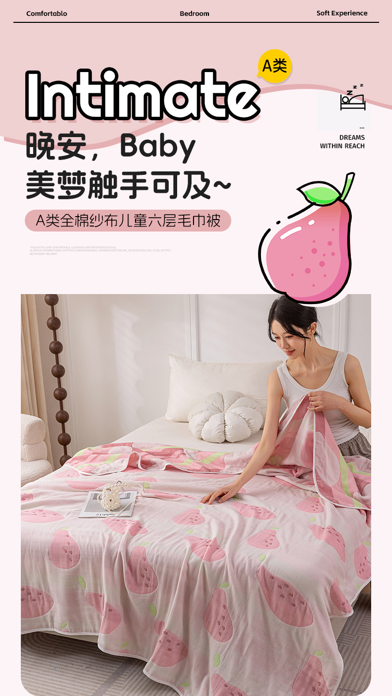 (总)乐家毛巾被(工厂自产自销) 2025新款A类全棉六层纱印花毛巾被,白色棉朵,彩蝶,彩虹小熊,动物派对,多彩南瓜,格子花花,黄油小熊,简笔森林,卡通狗狗,绿色茶花,莫比乌斯环,水墨花开,兔子小狗,吴丹花开,向日葵,尤加利,油画雏菊,happy腊肠狗