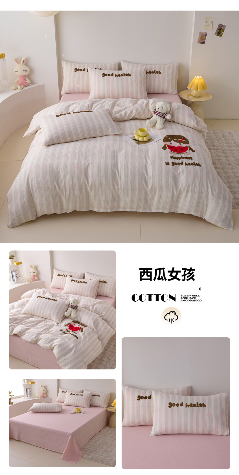 当前位置: 91家纺网 > 商品网购 > 床品套件 > 四件套 > 全棉普通四件套 > 爱思佳2025新款全棉双层纱毛巾绣系列四件套 西瓜女孩