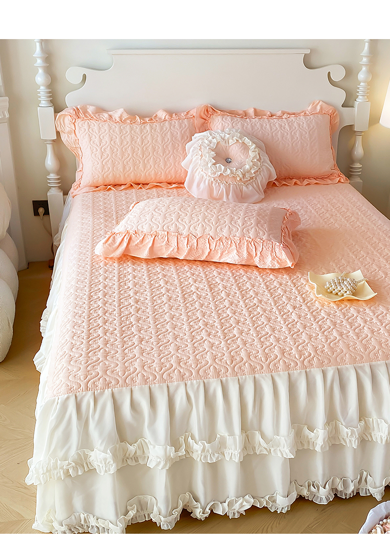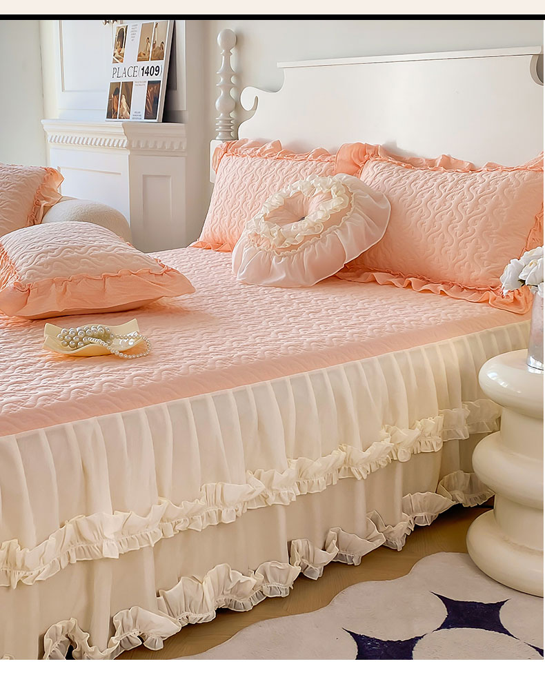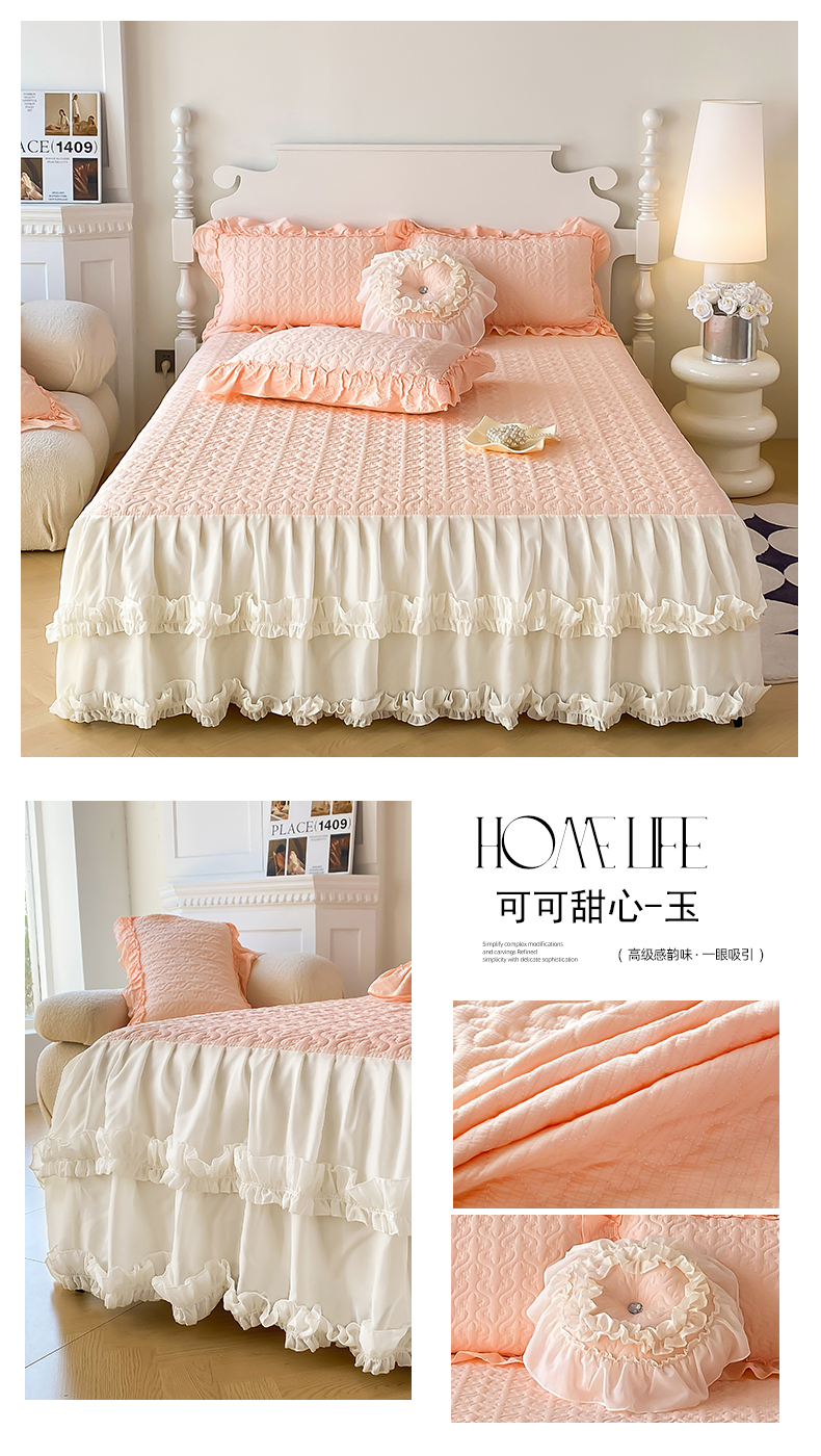 花香四季家纺 2025新款法式夹棉绗缝床裙单件三件套蕾丝公主风-可可甜心 可可甜心-绿