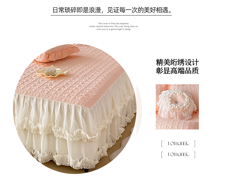 当前位置: 91家纺网 > 商品网购 > 床品套件 > 花香四季家纺 2025新款法式夹棉绗缝床裙单件三件套蕾丝公主风-可可甜心 可可甜心-绿