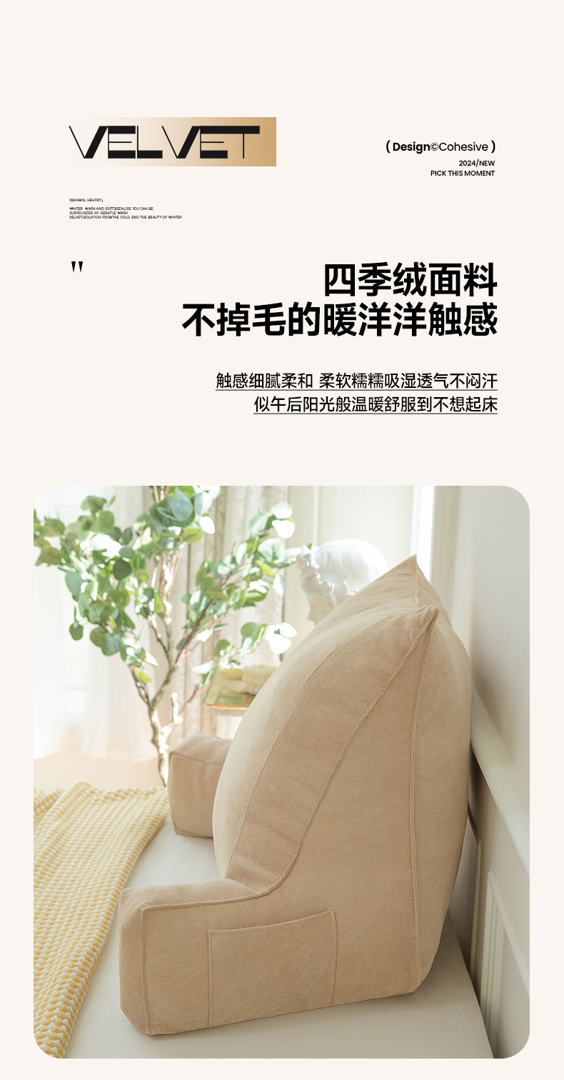 (总)一兰家纺 2024新款泰迪绒三角靠垫床头大靠背腰靠沙发靠背可拆洗-楠妮系列,楠妮-冰霉粉,楠妮-琥珀棕,楠妮-芥末黄,楠妮-咖啡,楠妮-破境白,楠妮-浅系灰,楠妮-蔚蓝