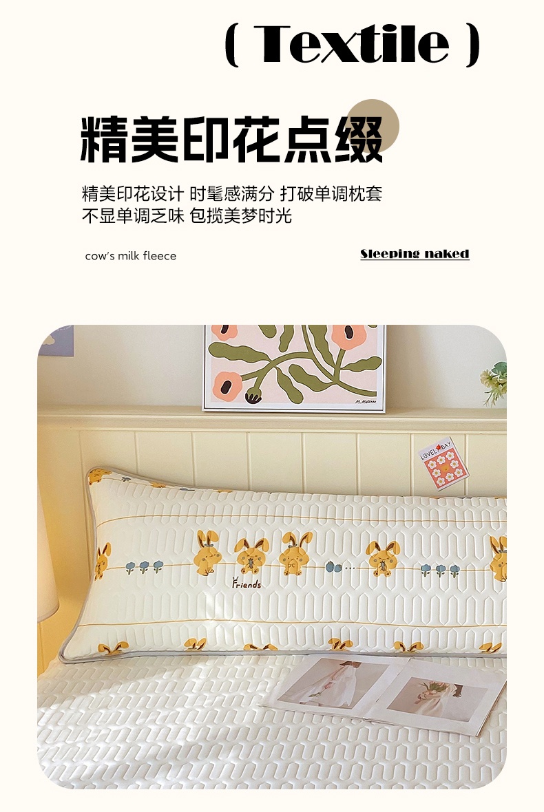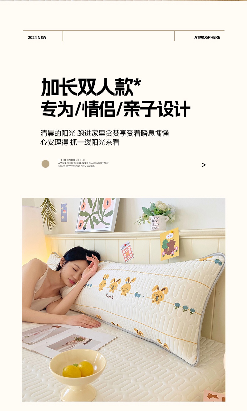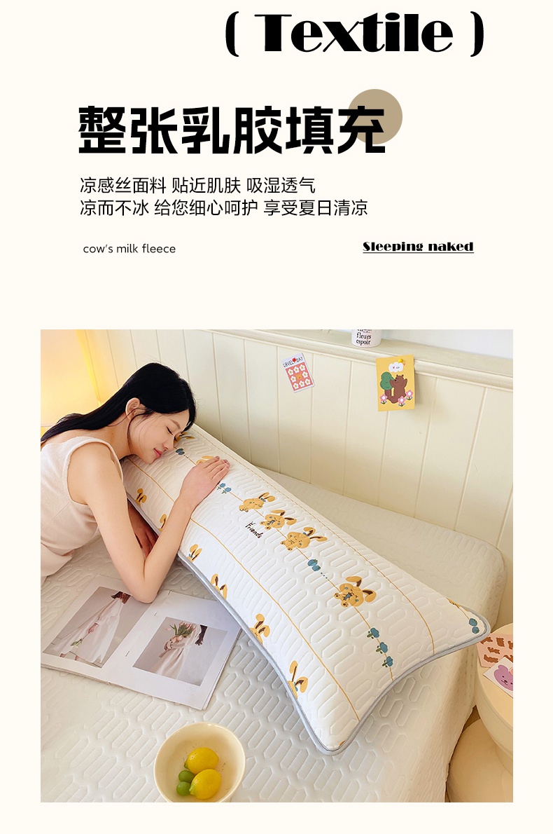 雨彤家纺 2025年新款A类乳胶凉感丝双人长枕套 萌萌兔
