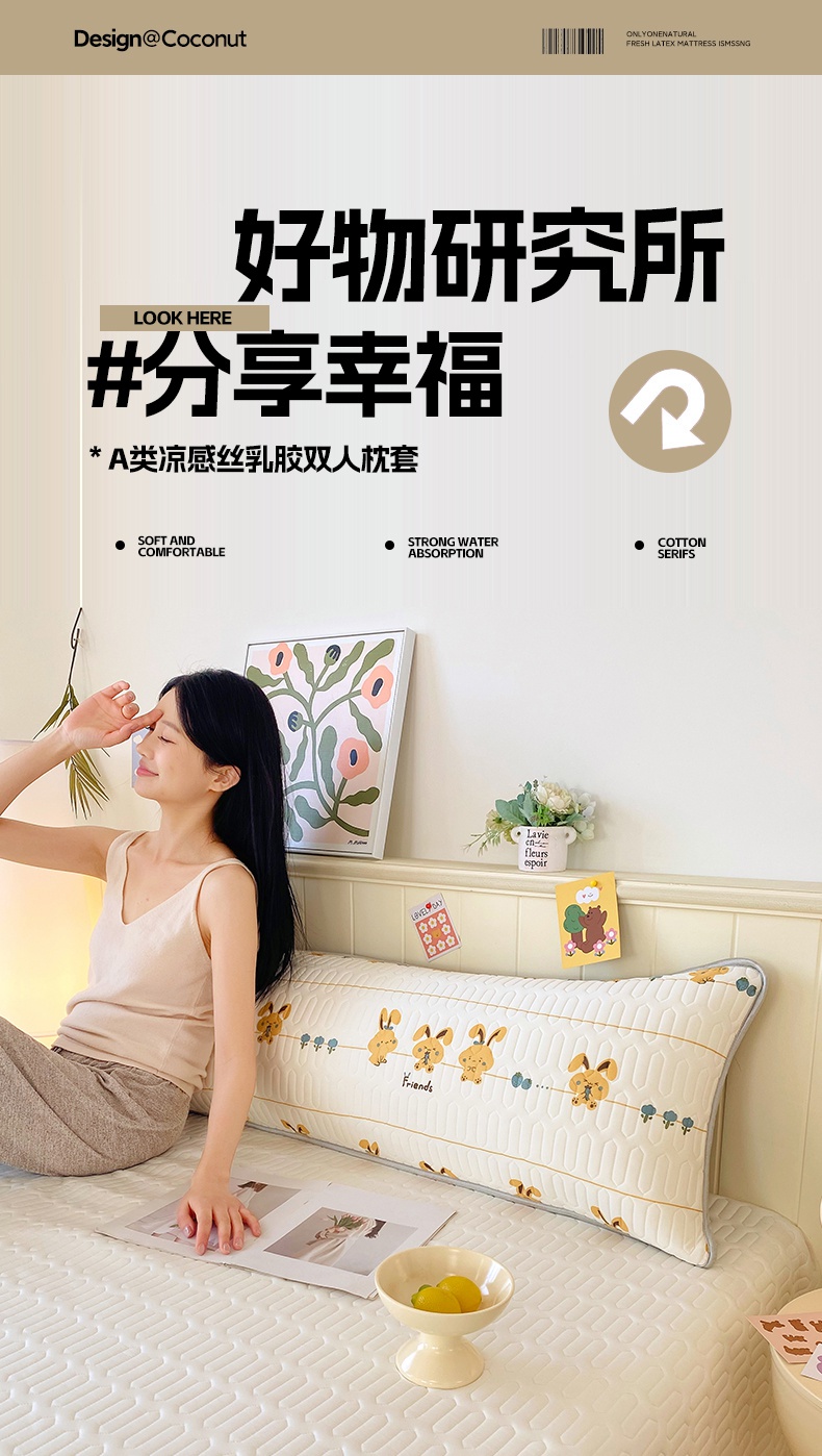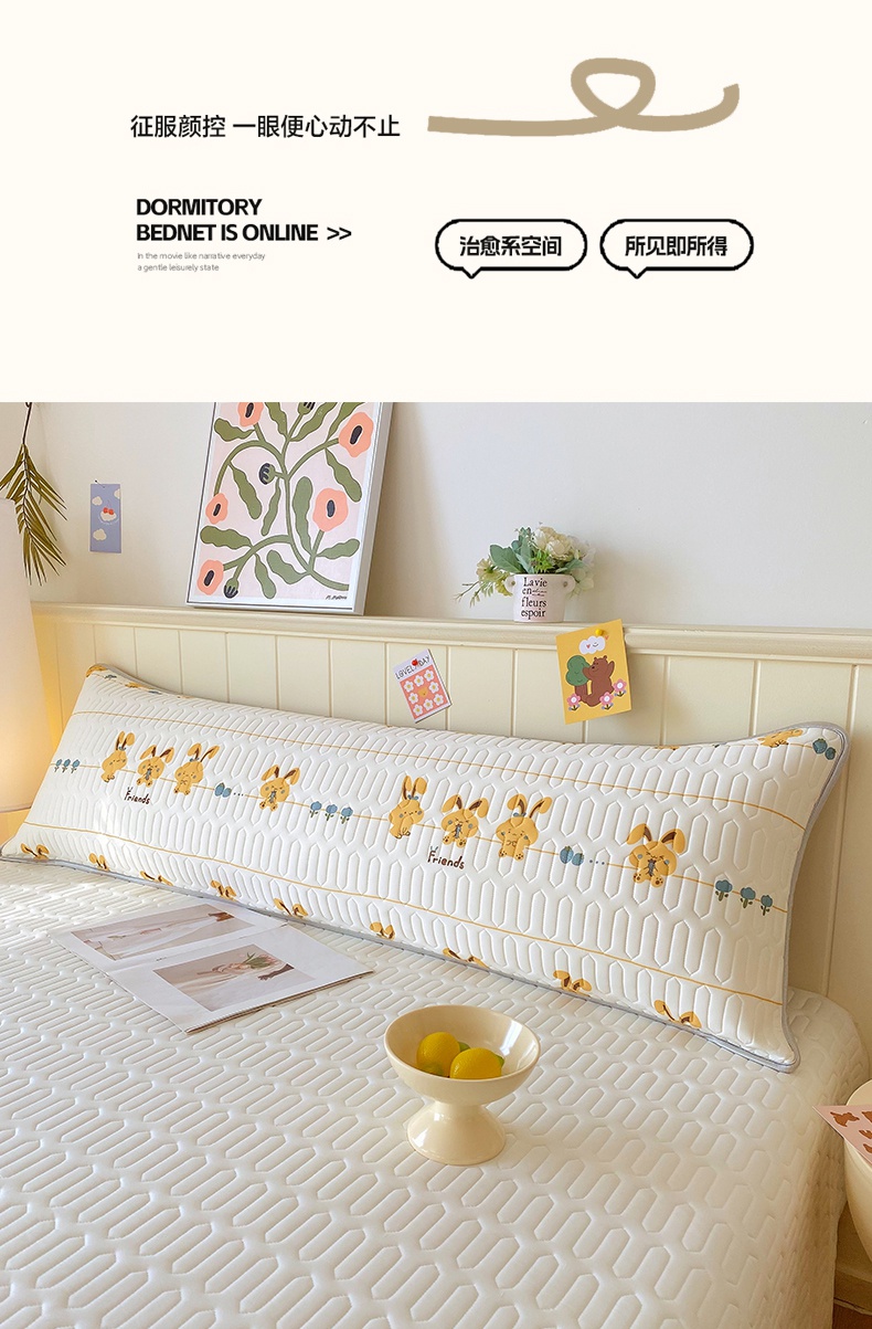 商品名称:雨彤家纺 2025年新款A类乳胶凉感丝双人长枕套 萌萌兔