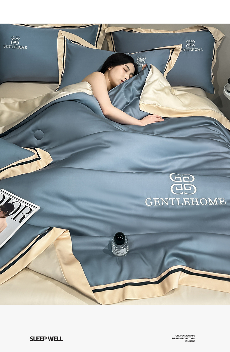 小久久(小九九) 2025新款水洗真丝夏被-威廉 威廉-宾利蓝+奶茶