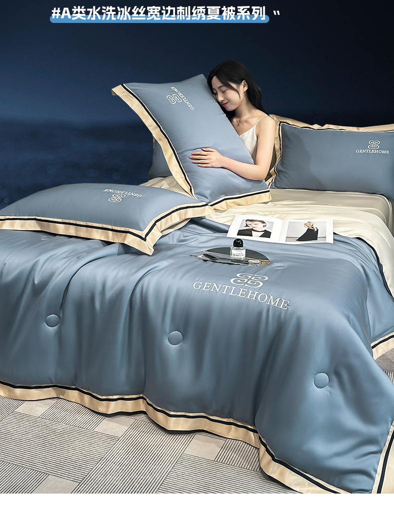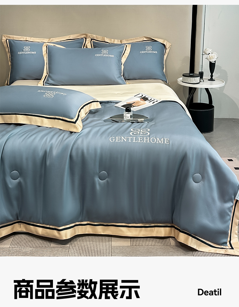 商品名称:小久久(小九九) 2025新款水洗真丝夏被-威廉 威廉-宾利蓝+奶茶