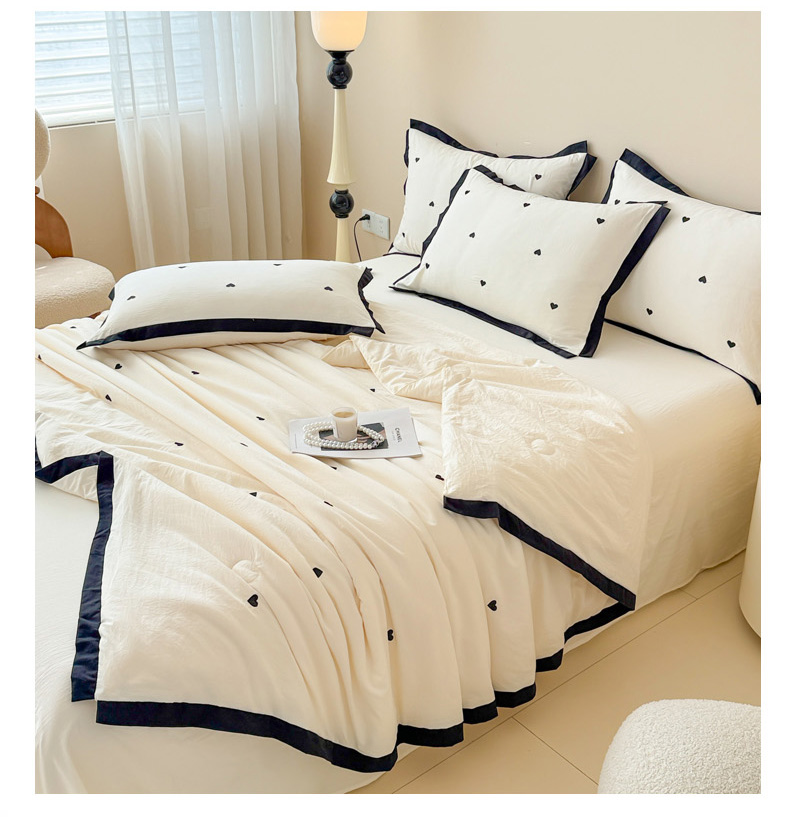 商品名称:米可 2025新款A类刺绣云朵棉夏被四件套 爱心-粉
