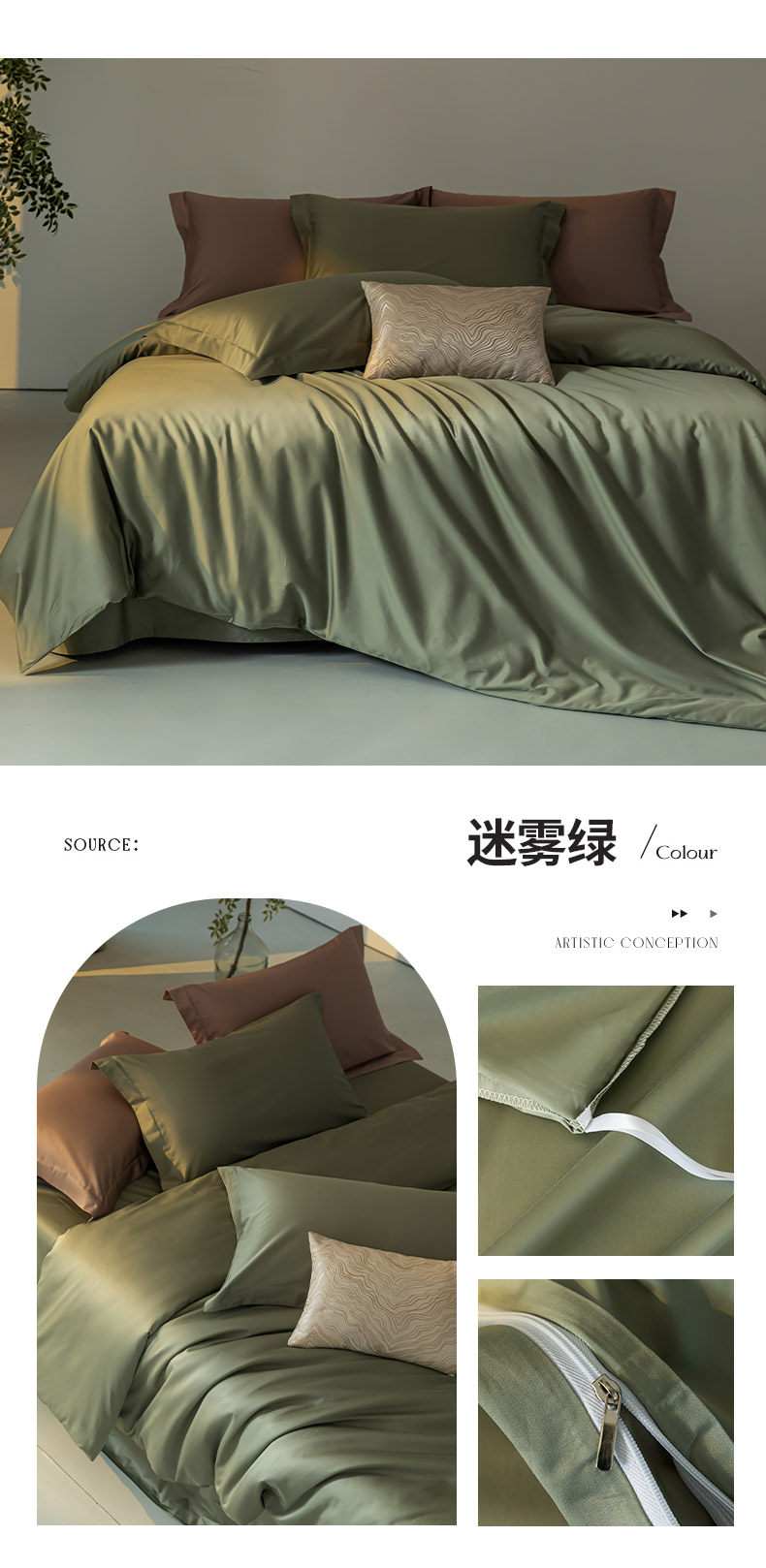 商品名称:轩和 2024新款70支埃及匹马棉纯色四件套床笠床单款5个尺寸不断货 迷雾绿