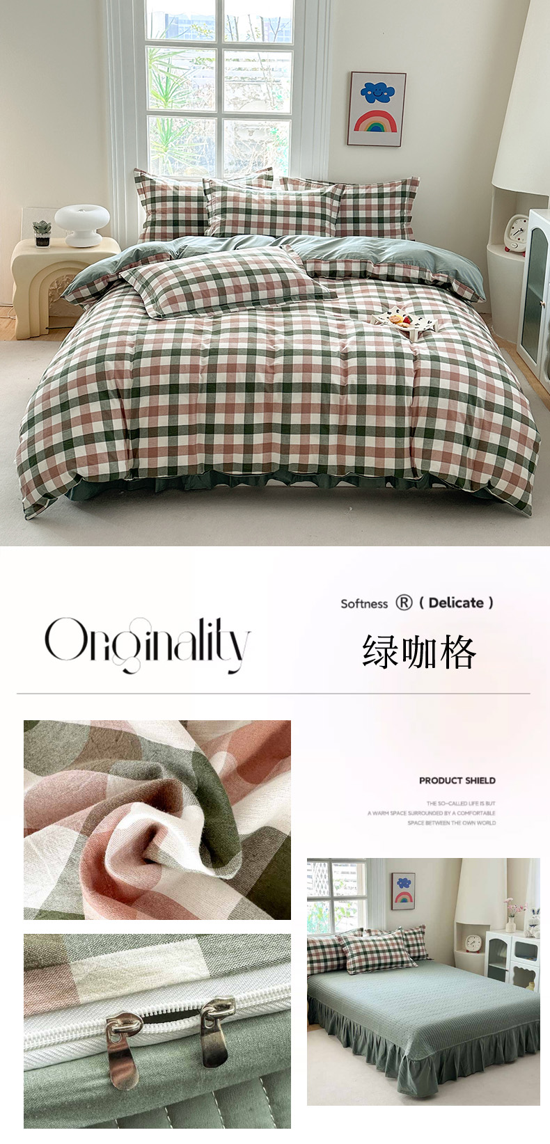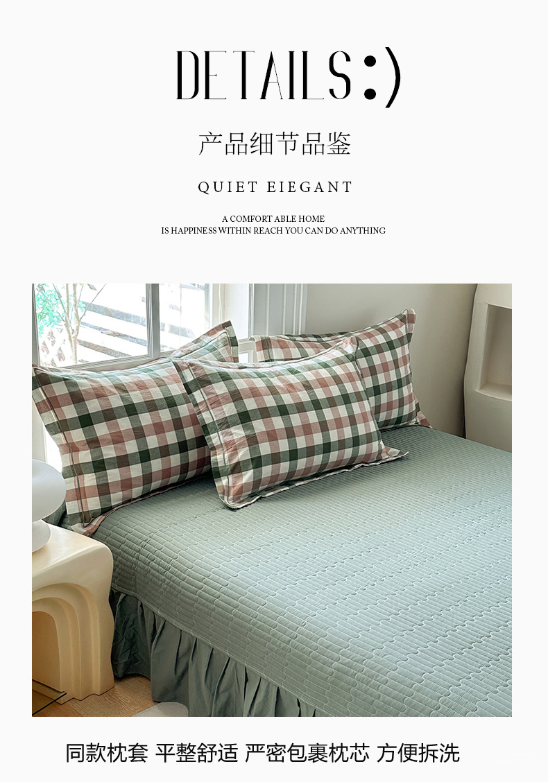 商品名称:金窝窝家纺 2025新款全棉色织水洗棉床盖四件套 绿咖时尚格