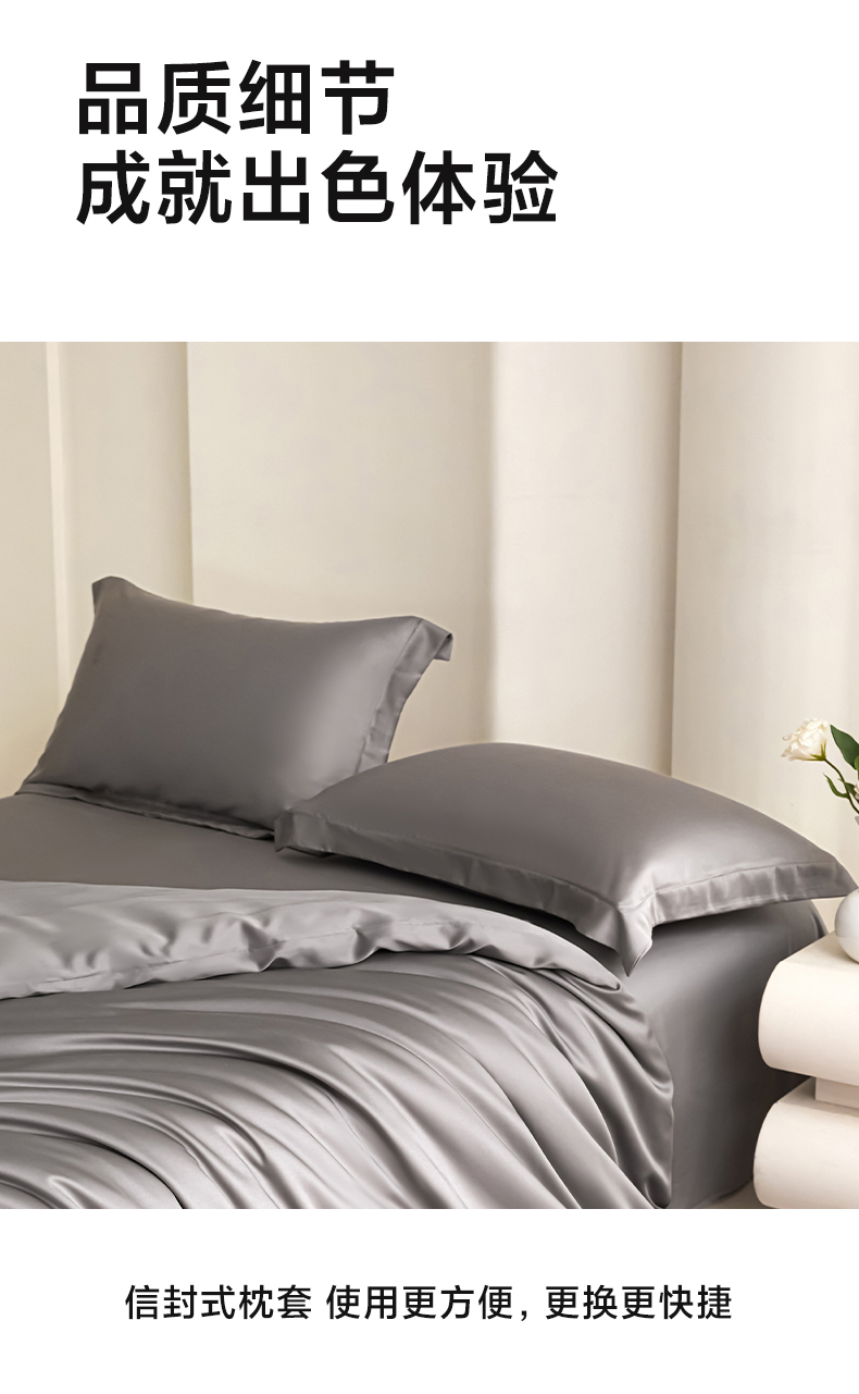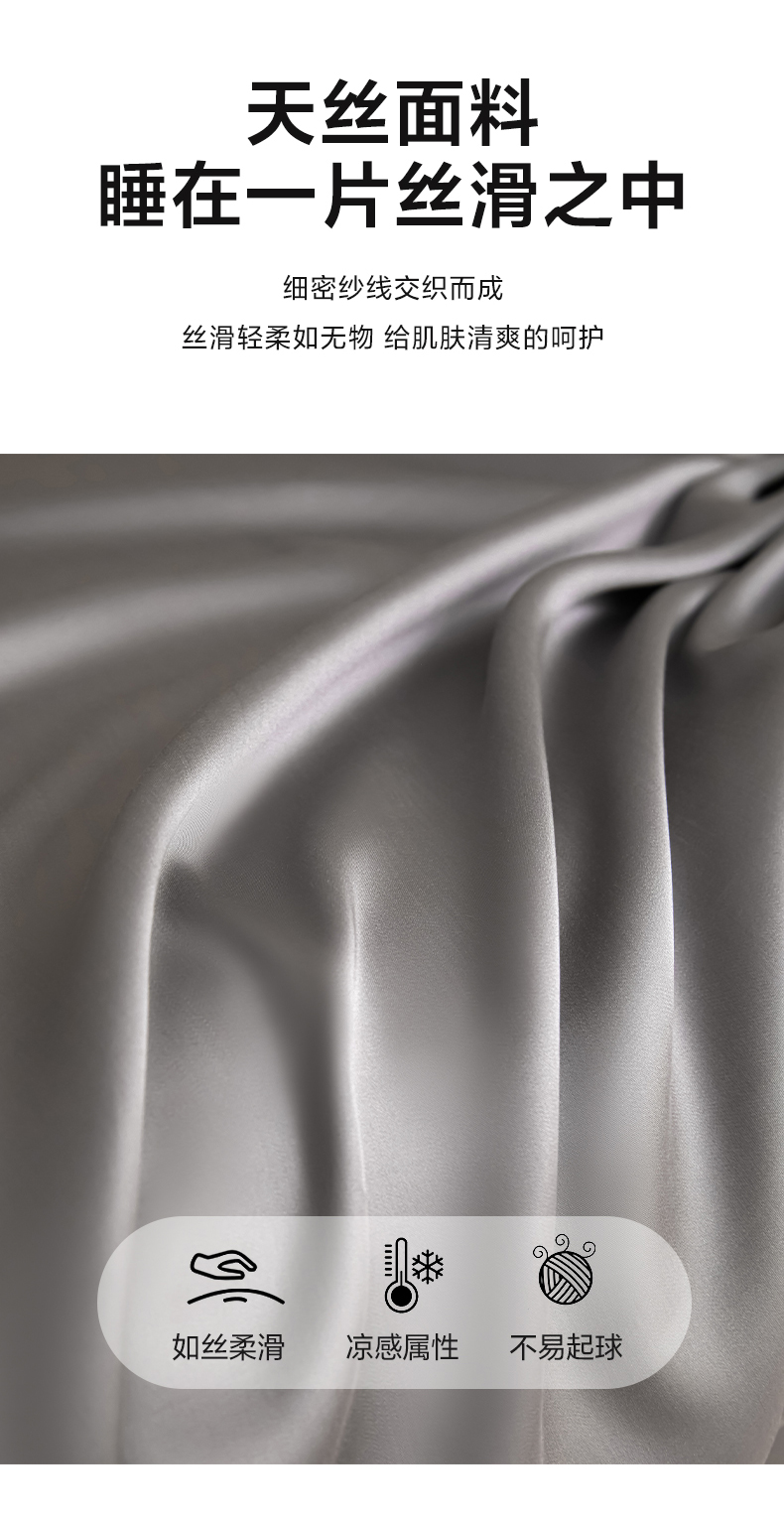 商品名称:禧澜庭 2025新款纯色夏季凉感天丝四件套莱赛尔纤维冰丝四件套 夏云灰