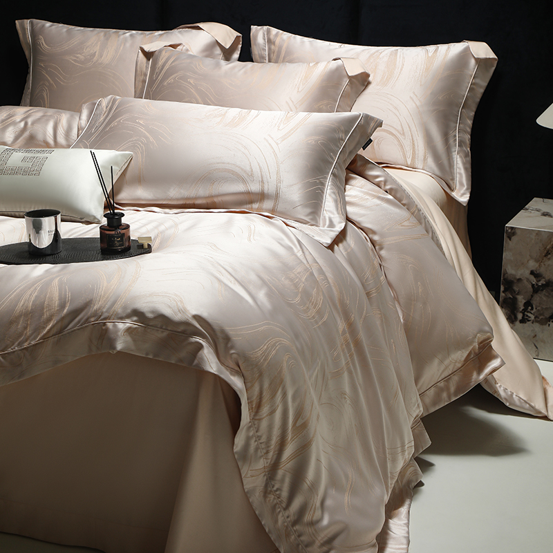 商品名称:张公子婚庆馆 2025新款长绒棉高精密色织大提花抗皱埋绳工艺系列 澜梦-香槟金