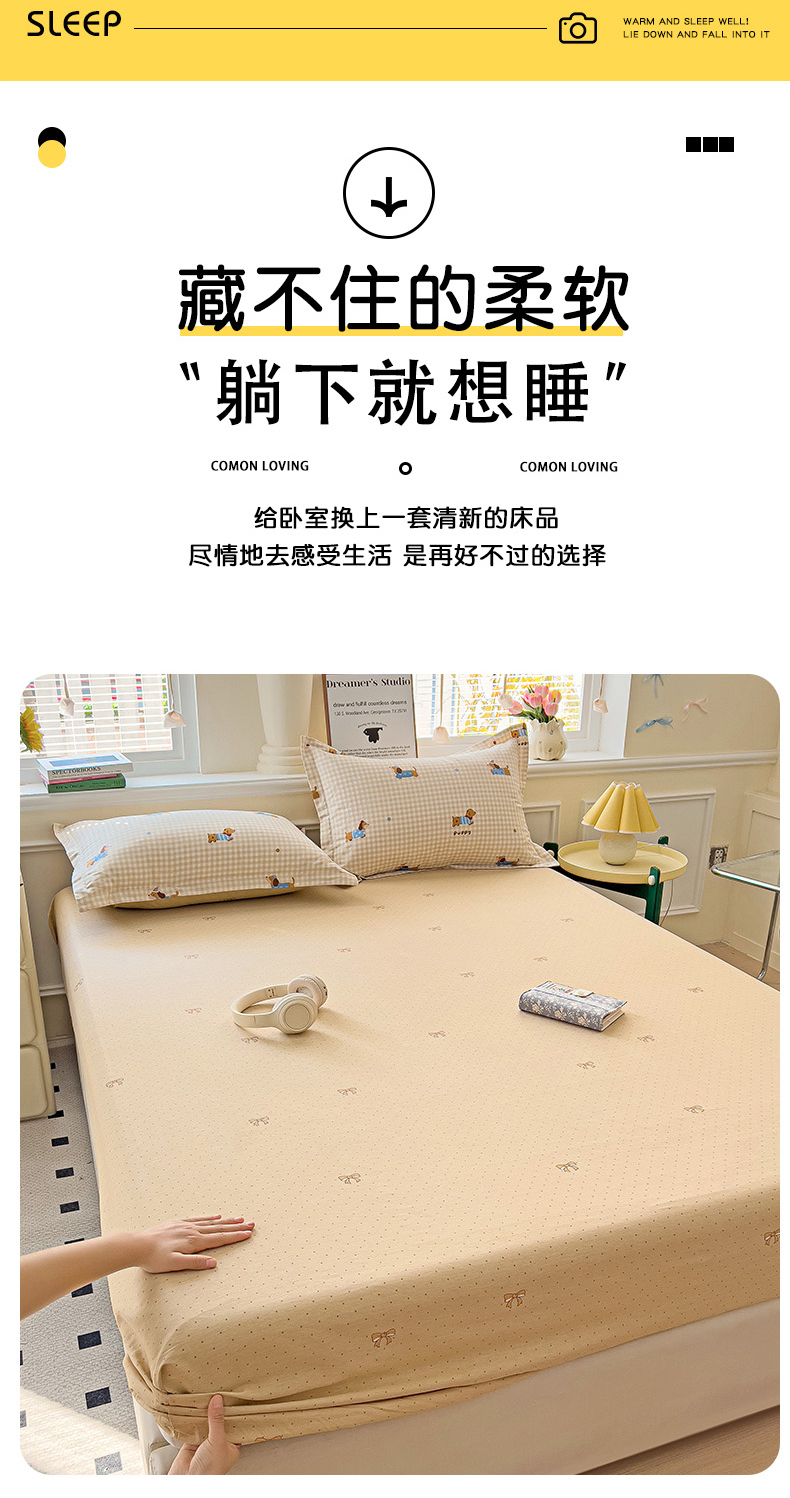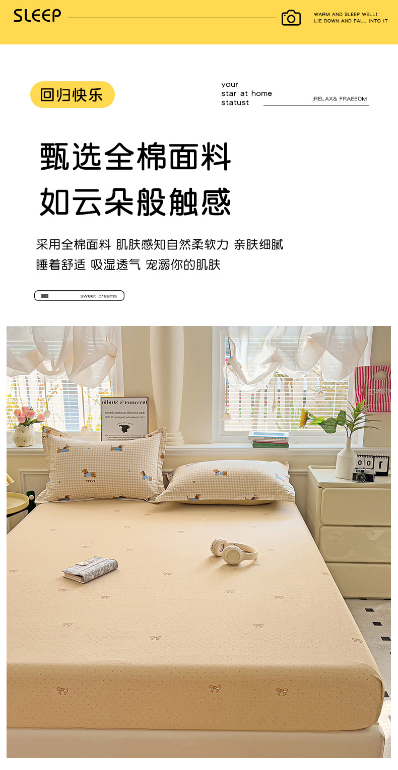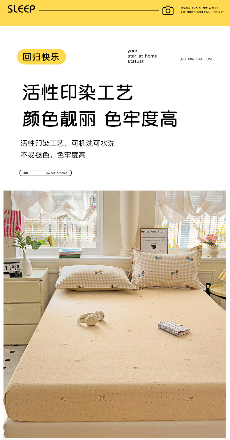 商品名称:依庭 2025新款全棉印花花卉款四件套单品系列-单床笠 俏皮狗
