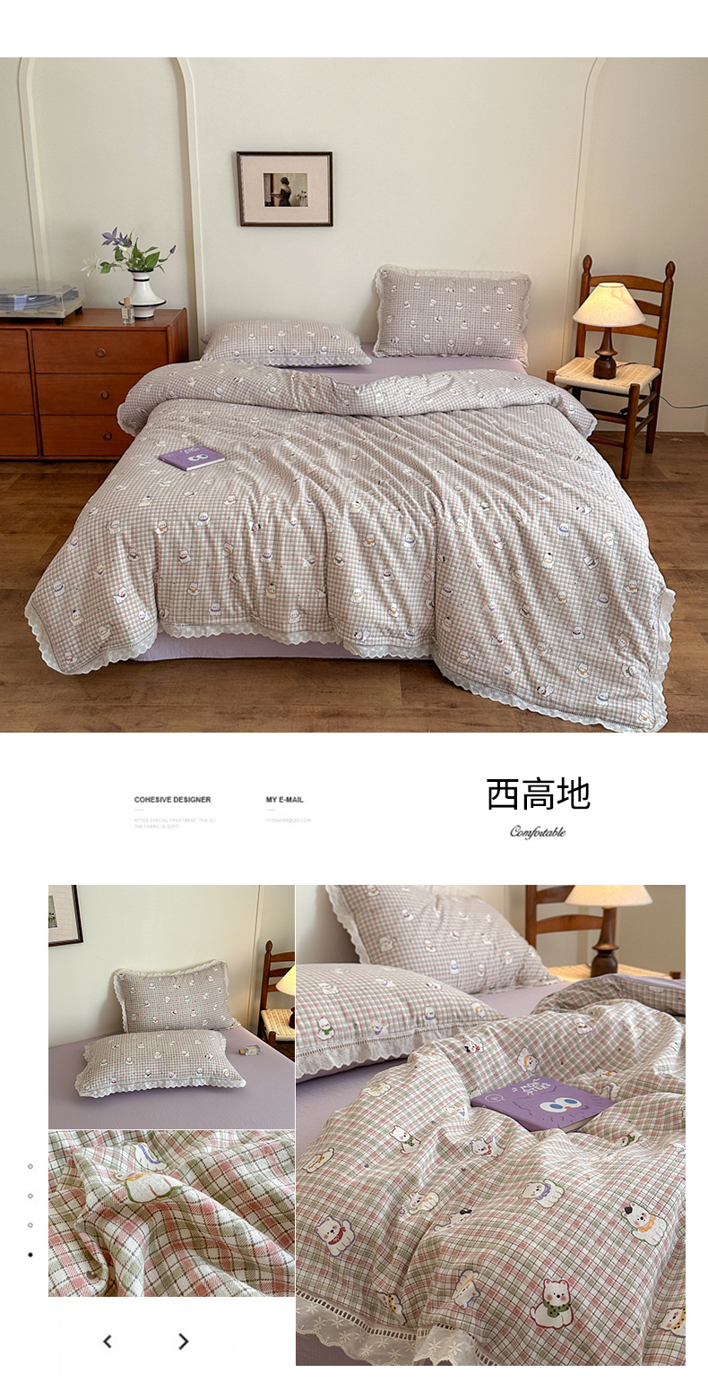 商品名称:一霖家纺 2025新款云感双层纱花边款四件套 西高地