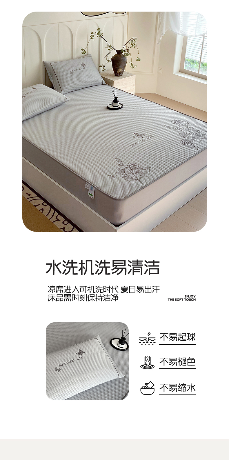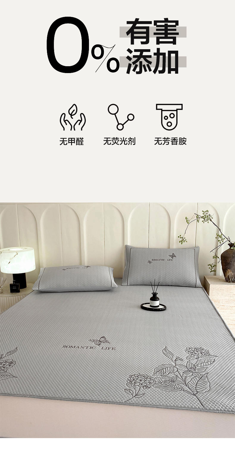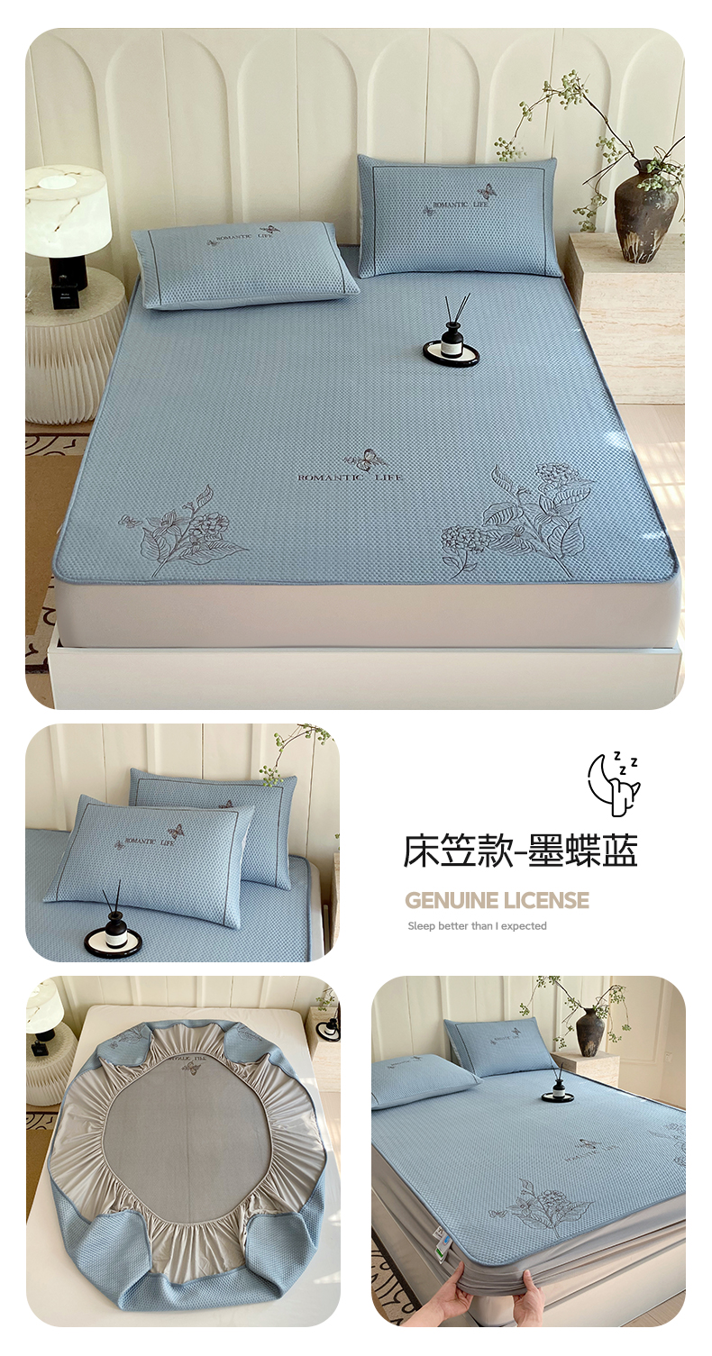 宜家坊 2025新款A类PE中分子绣花软凉席-墨蝶 床笠款-墨蝶灰