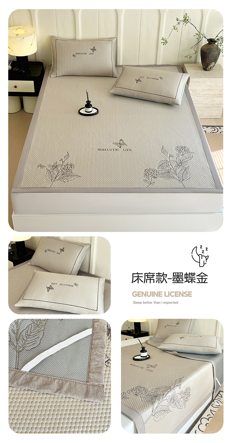 商品名称:宜家坊 2025新款A类PE中分子绣花软凉席-墨蝶 床笠款-墨蝶灰