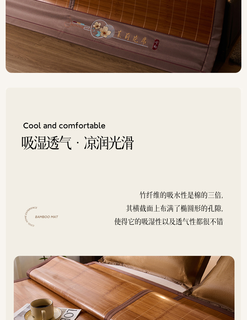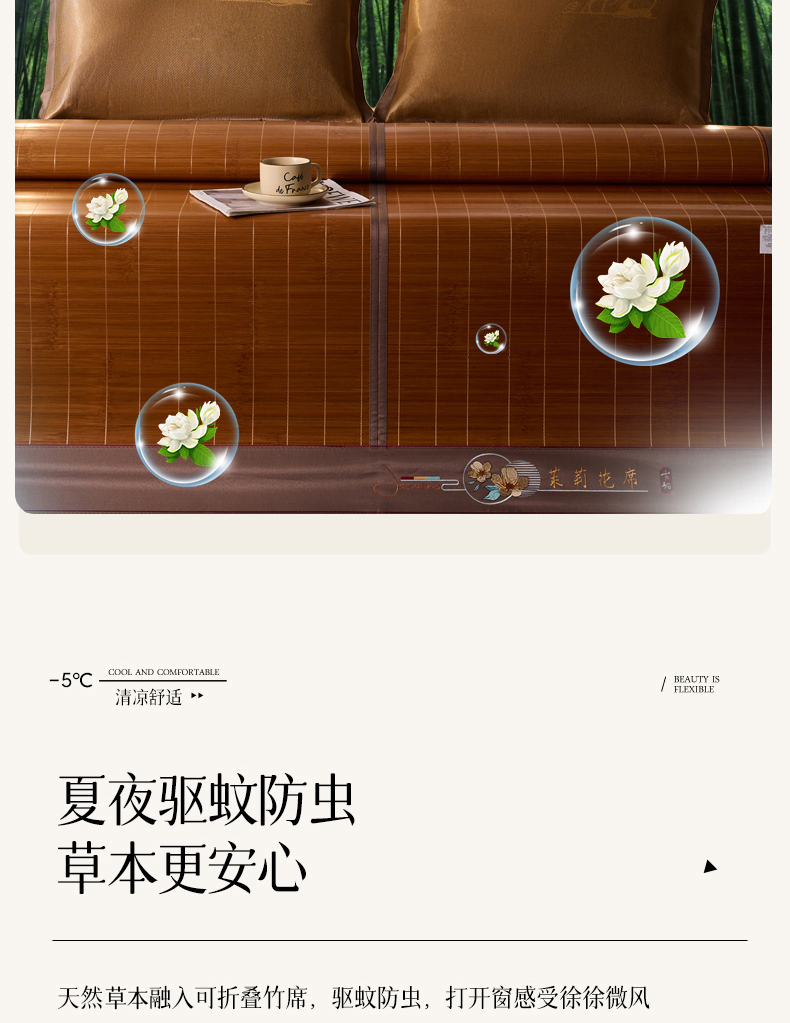 • 91家纺网 家纺一手货源 找家纺 鑫琪莱家纺 2025新款双面竹席冰丝席竹凉席学生宿舍席子 草本-茉莉-