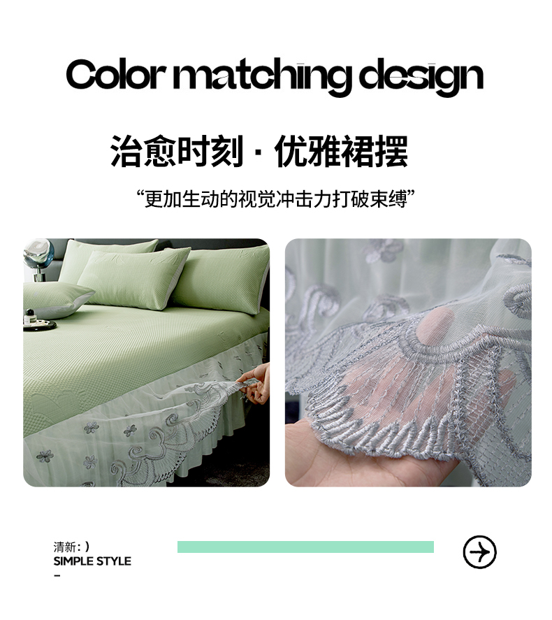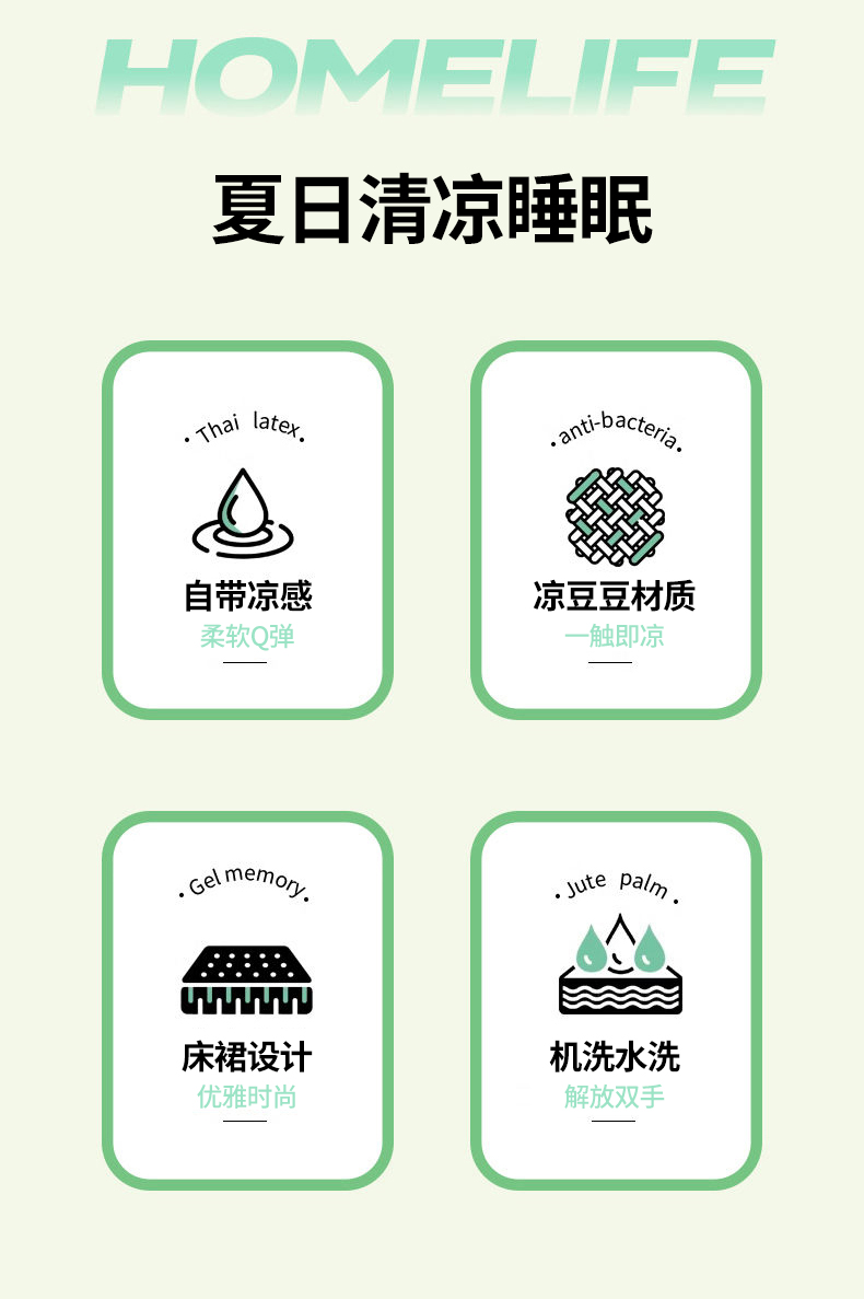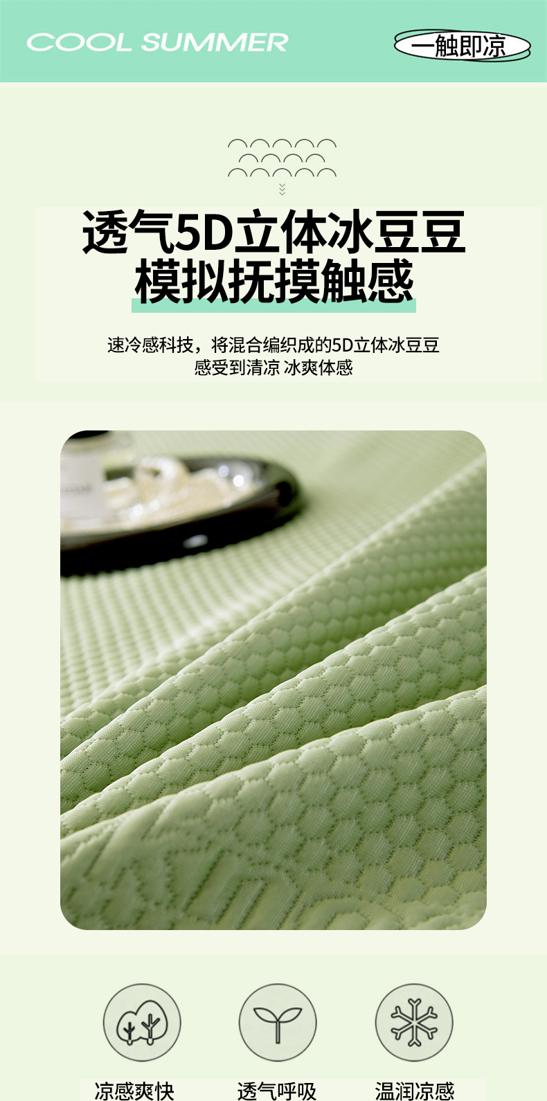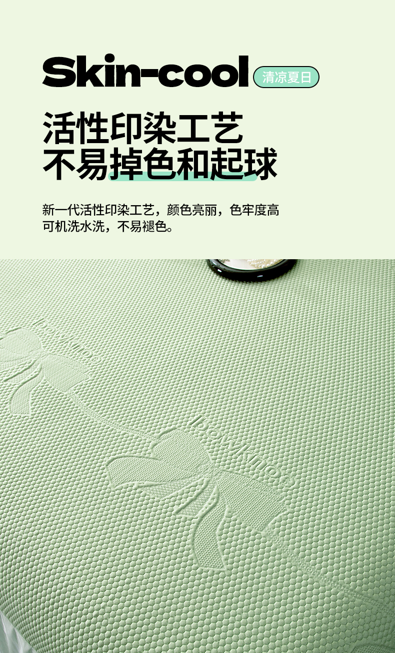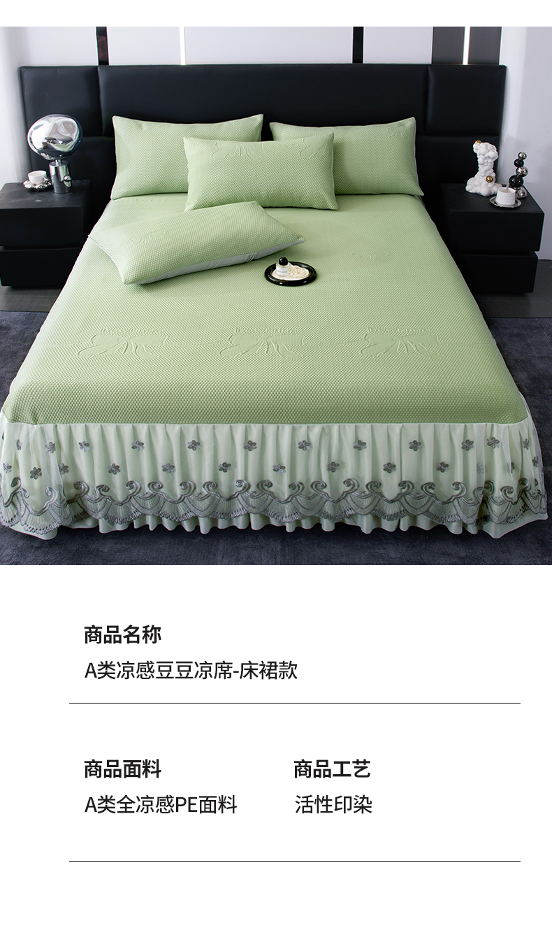 商品名称:2025新款A类凉感豆豆凉席系列床裙款 蝴蝶结-绿