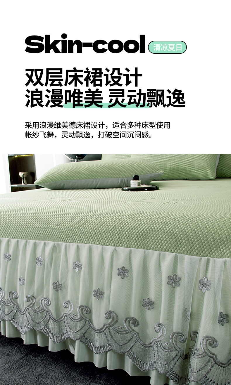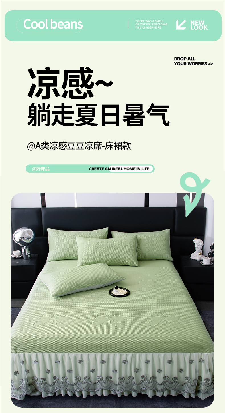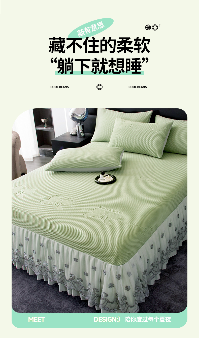 2025新款A类凉感豆豆凉席系列床裙款 蝴蝶结-绿