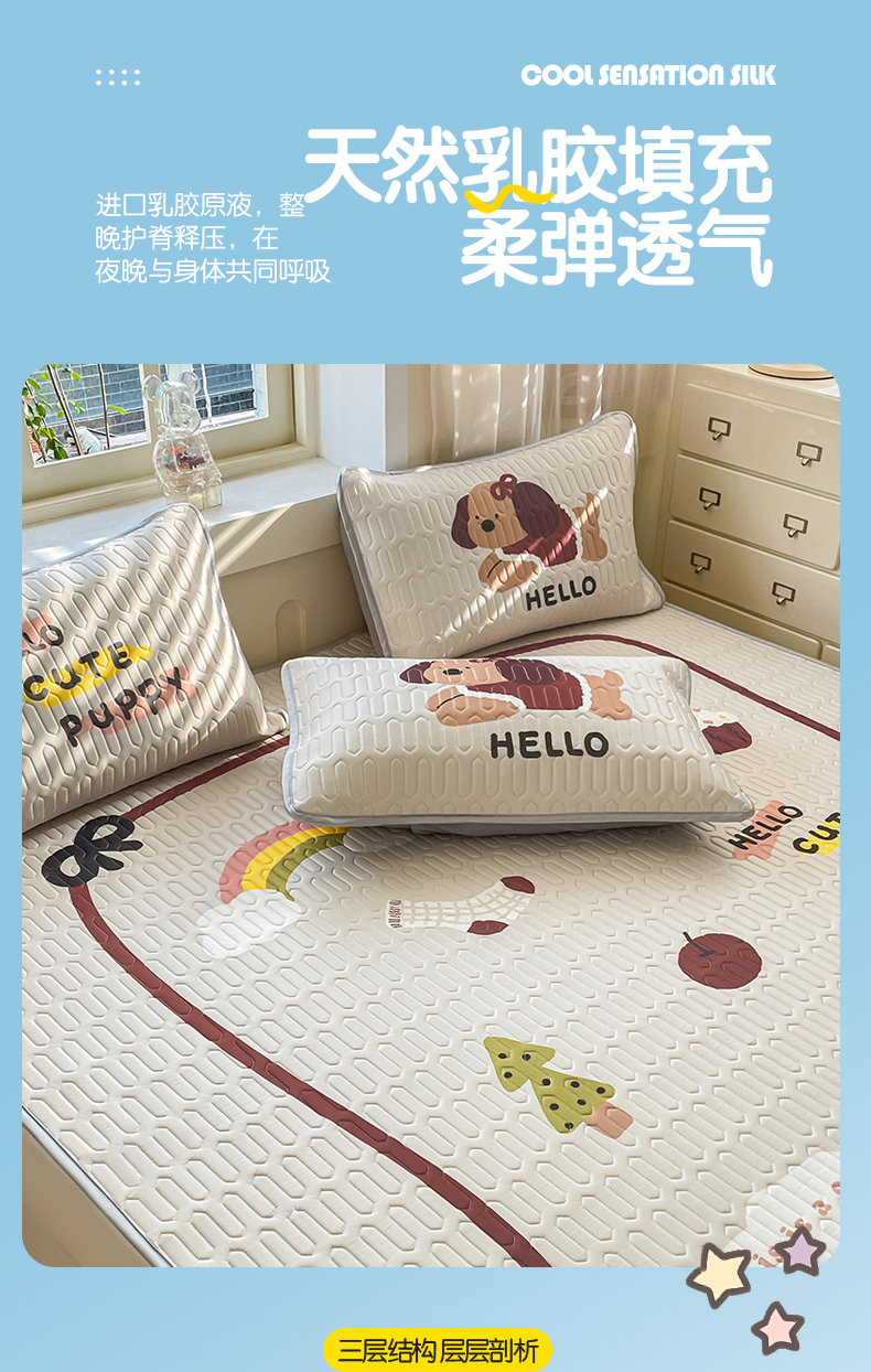 商品名称:布卢姆床垫 2025新款卡通A类大版数码凉感丝乳胶凉席 星星狗