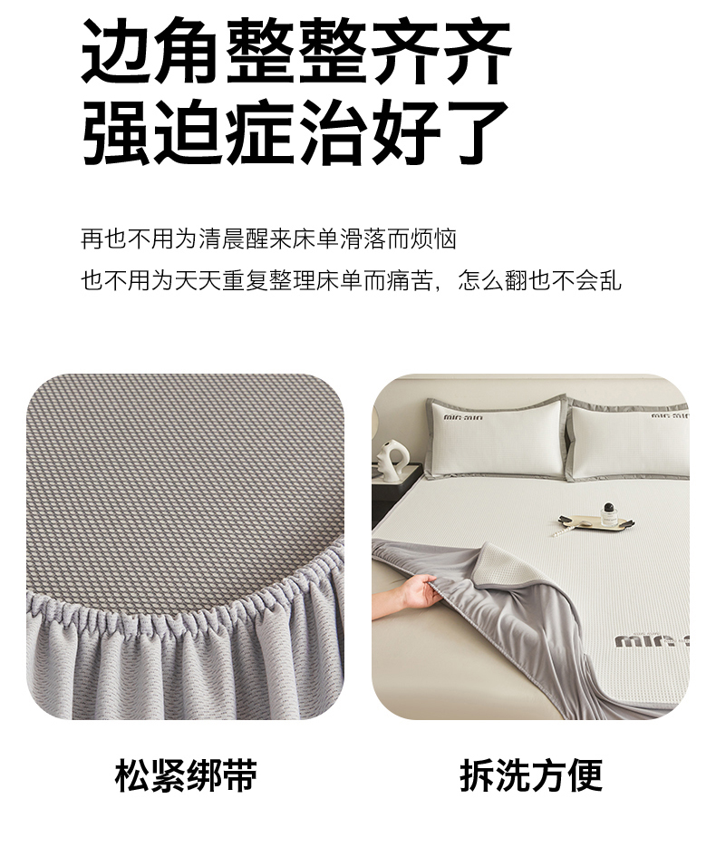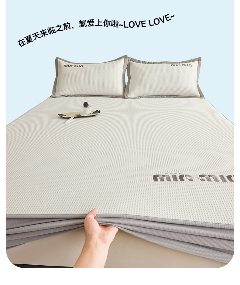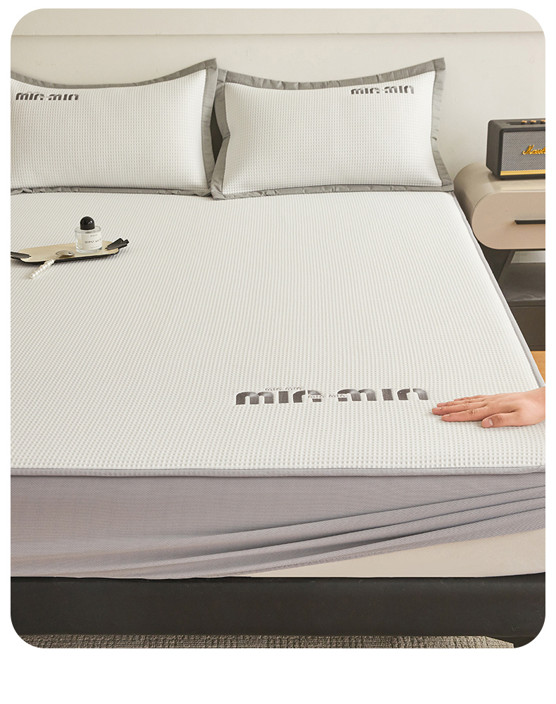 布卢姆床垫 2025新款A类PE凉感华夫格刺绣凉豆豆席床笠款 豆豆床笠-奶白
