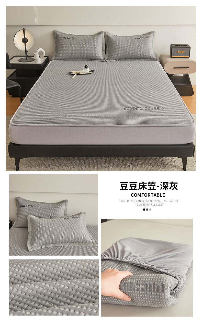 商品名称:布卢姆床垫 2025新款A类PE凉感华夫格刺绣凉豆豆席床笠款 豆豆床笠-奶白