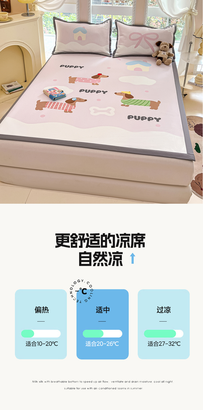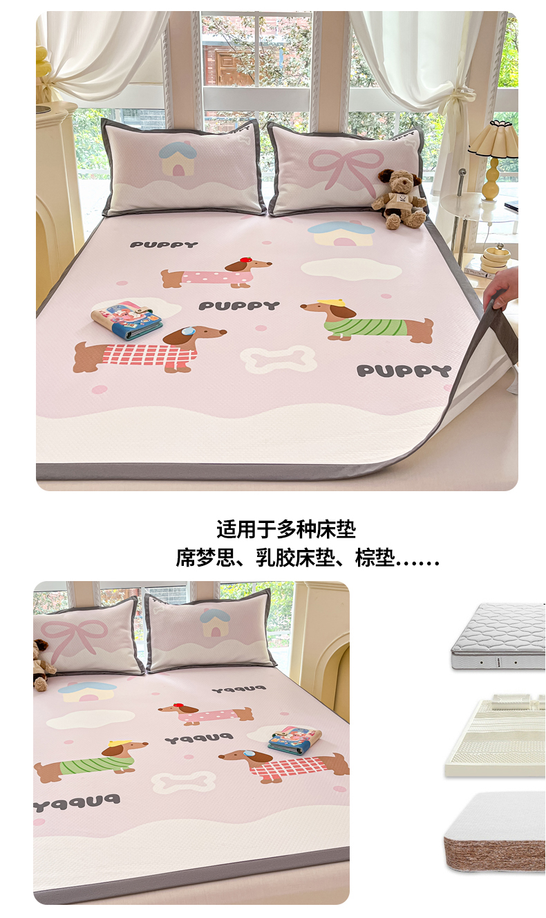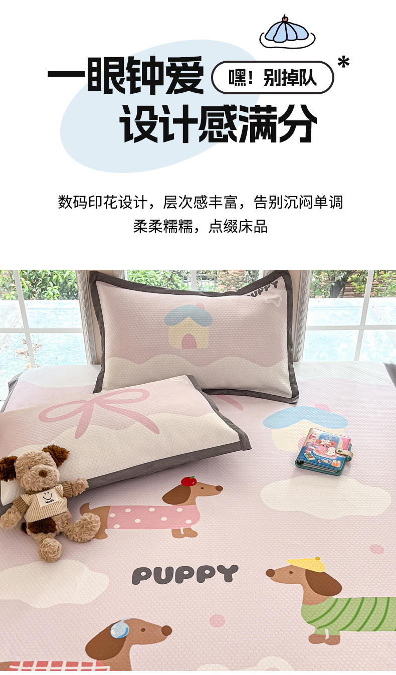商品名称:Sweet dreams甜梦 2025新款数码印花凉感豆豆软席凉席席子系列-大版 腊肠狗