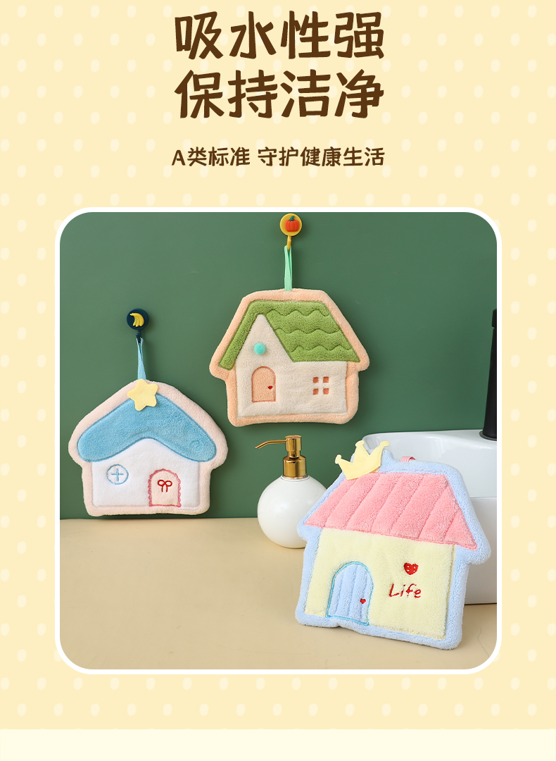 当前位置: 91家纺网 > 商品网购 > 居家日用 > 毛巾/浴巾/浴袍 > 手巾/手帕 > 彩虹毛巾2025新款珊瑚绒卡通可挂式加厚吸水不掉毛可爱小毛巾厨房洗手间挂巾便携式懒人擦手布-房子系列 三色装