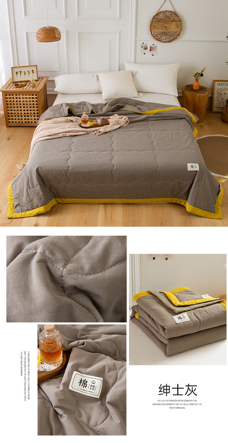 商品名称:天瑜家纺 2025新款全棉纯色水洗棉夏被被子被芯 绅士灰-黄