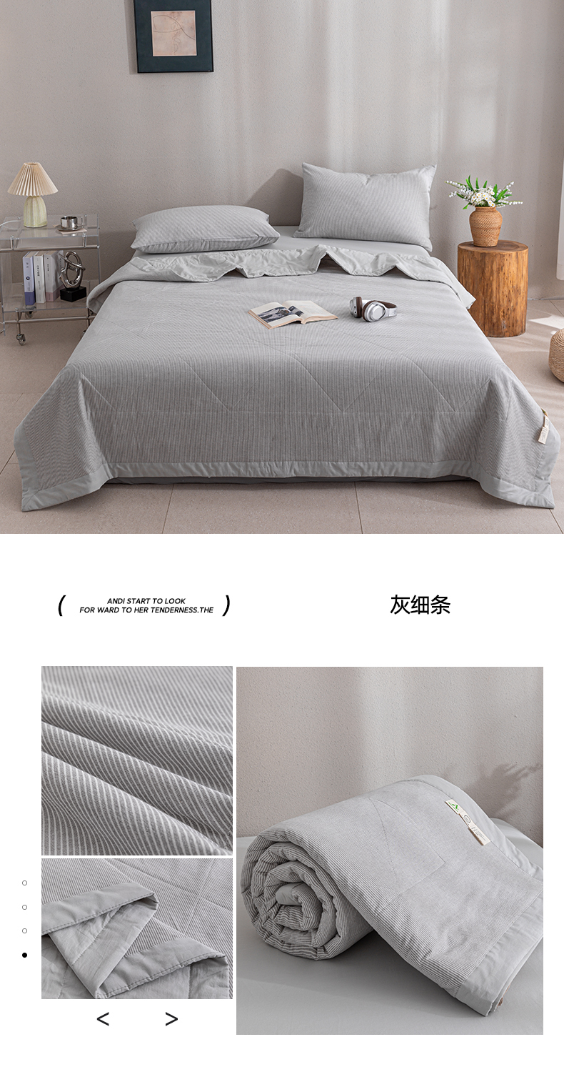 天瑜家纺 2025新款色织全棉水洗棉棉花夏被 纯白小格