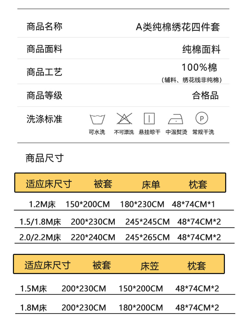 1.5m床笠款四件套 被套200x230cm | ¥135.00 |
