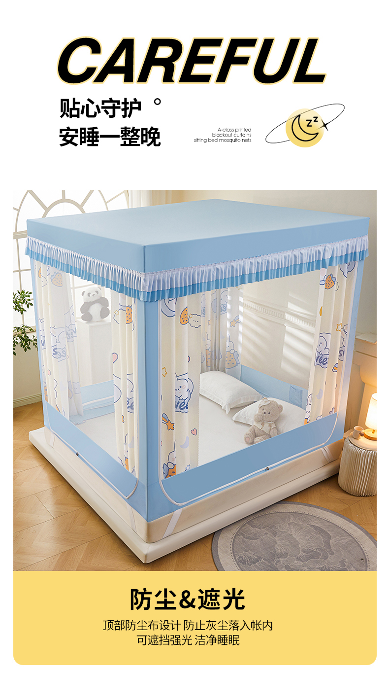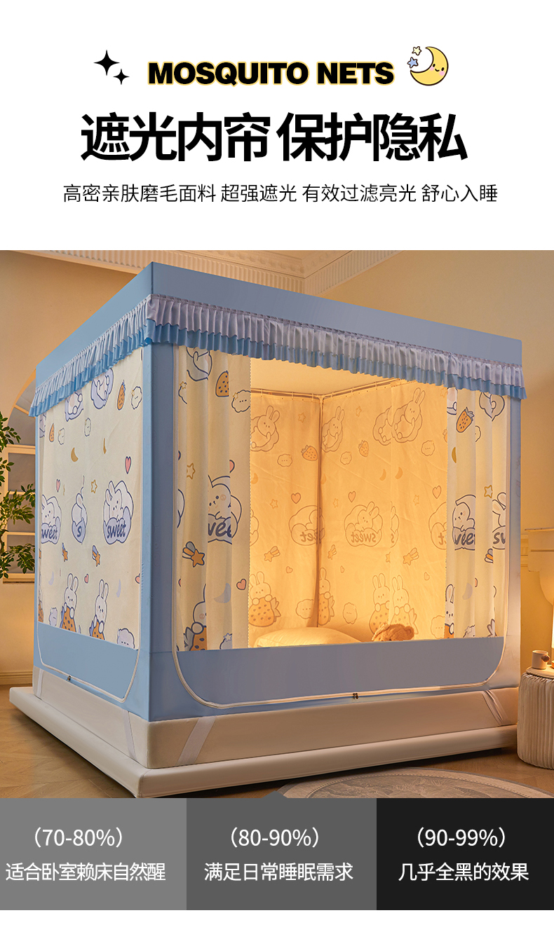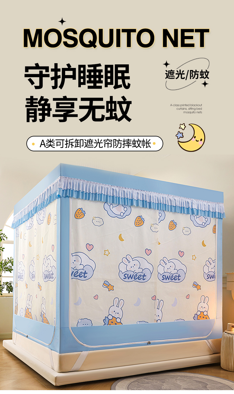 当前位置: 91家纺网 > 商品网购 > 床上用品 > 蚊帐 > 坐床式蚊帐 > 浪幔纱蚊帐 2025新款A类可拆卸床单全底防摔蚊帐遮光床帘一体式回底拉链坐床 星月小兔【回底款】