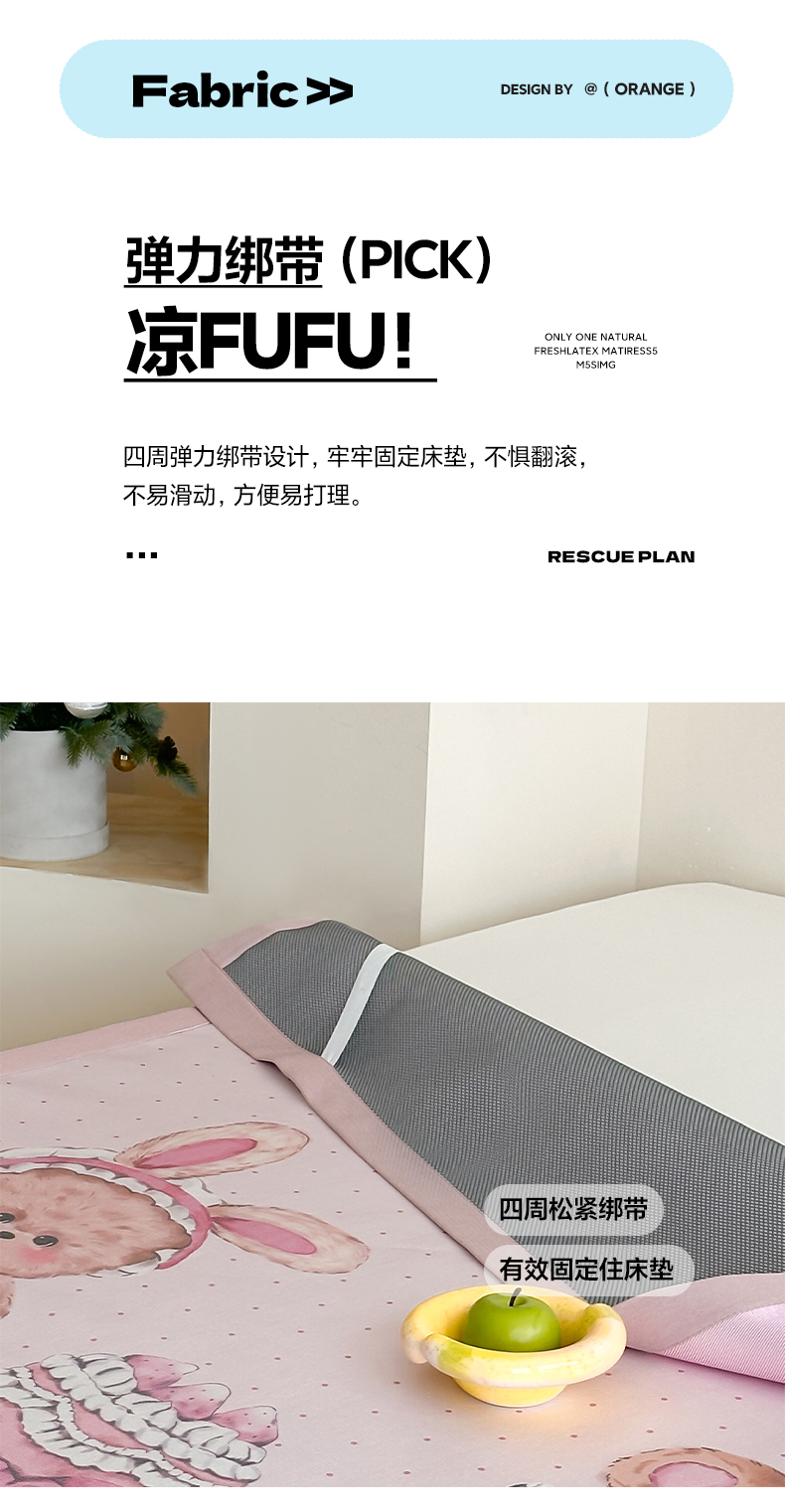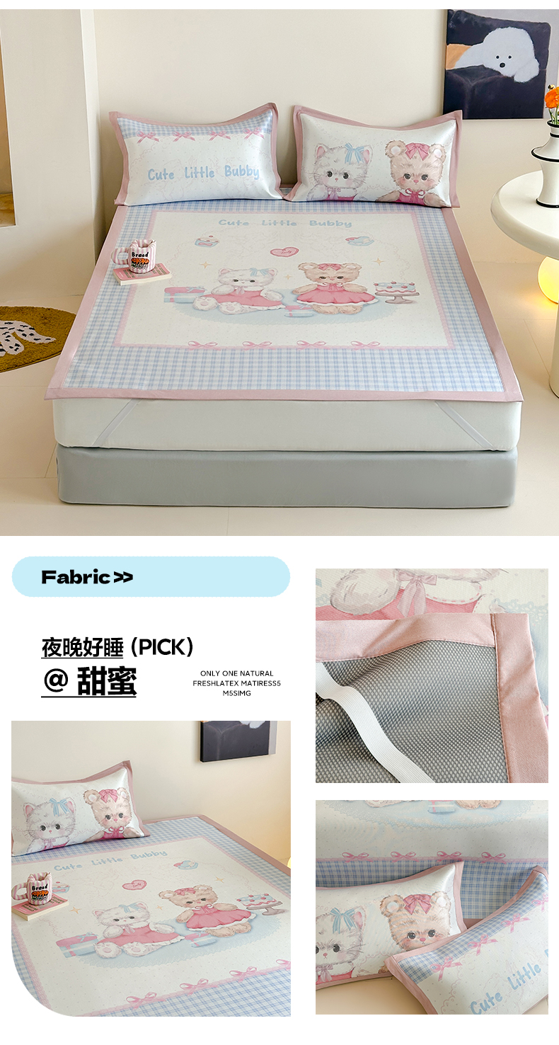 澳萝拉 2022新款凉感丝乳胶凉席-蓝心小熊,蓝心小熊