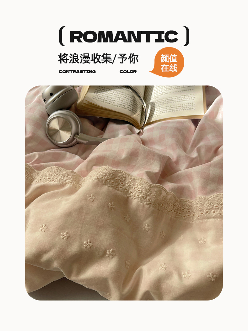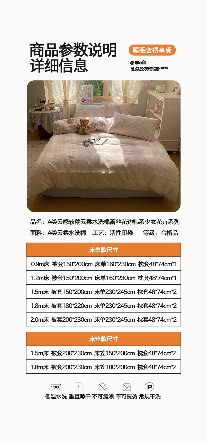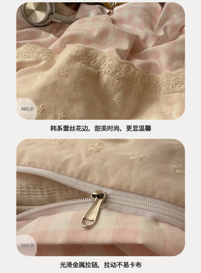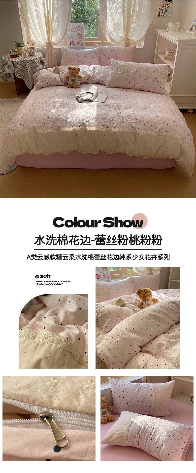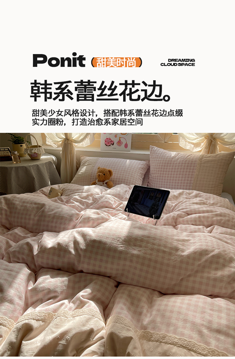 当前位置: 91家纺网 > 商品网购 > 床品套件 > 四件套 > 水洗棉四件套 > 桃心家居 2025新款云感水洗棉蕾丝花边四件套 水洗棉花边-蕾丝粉格蓝
