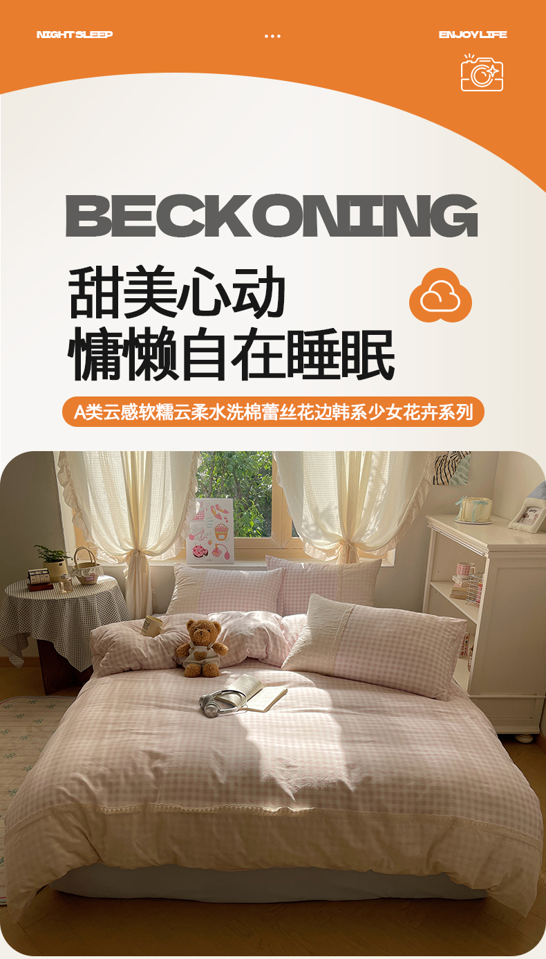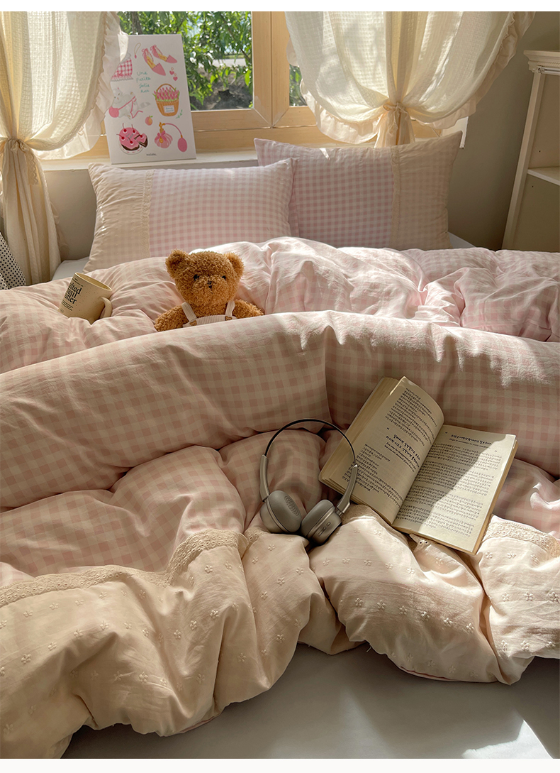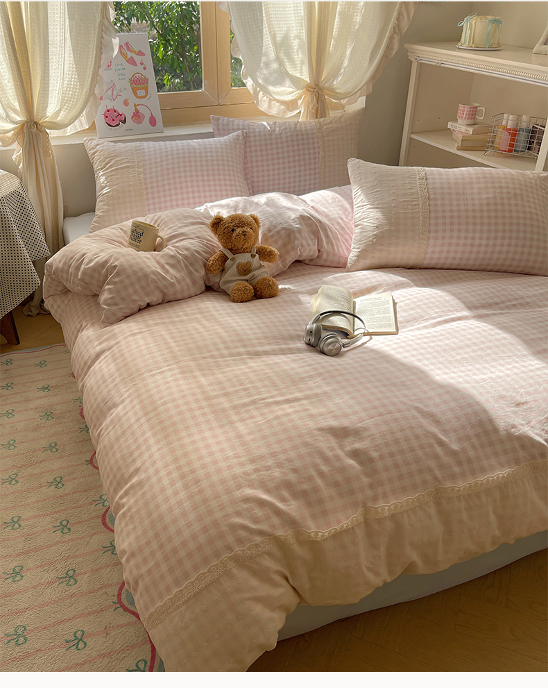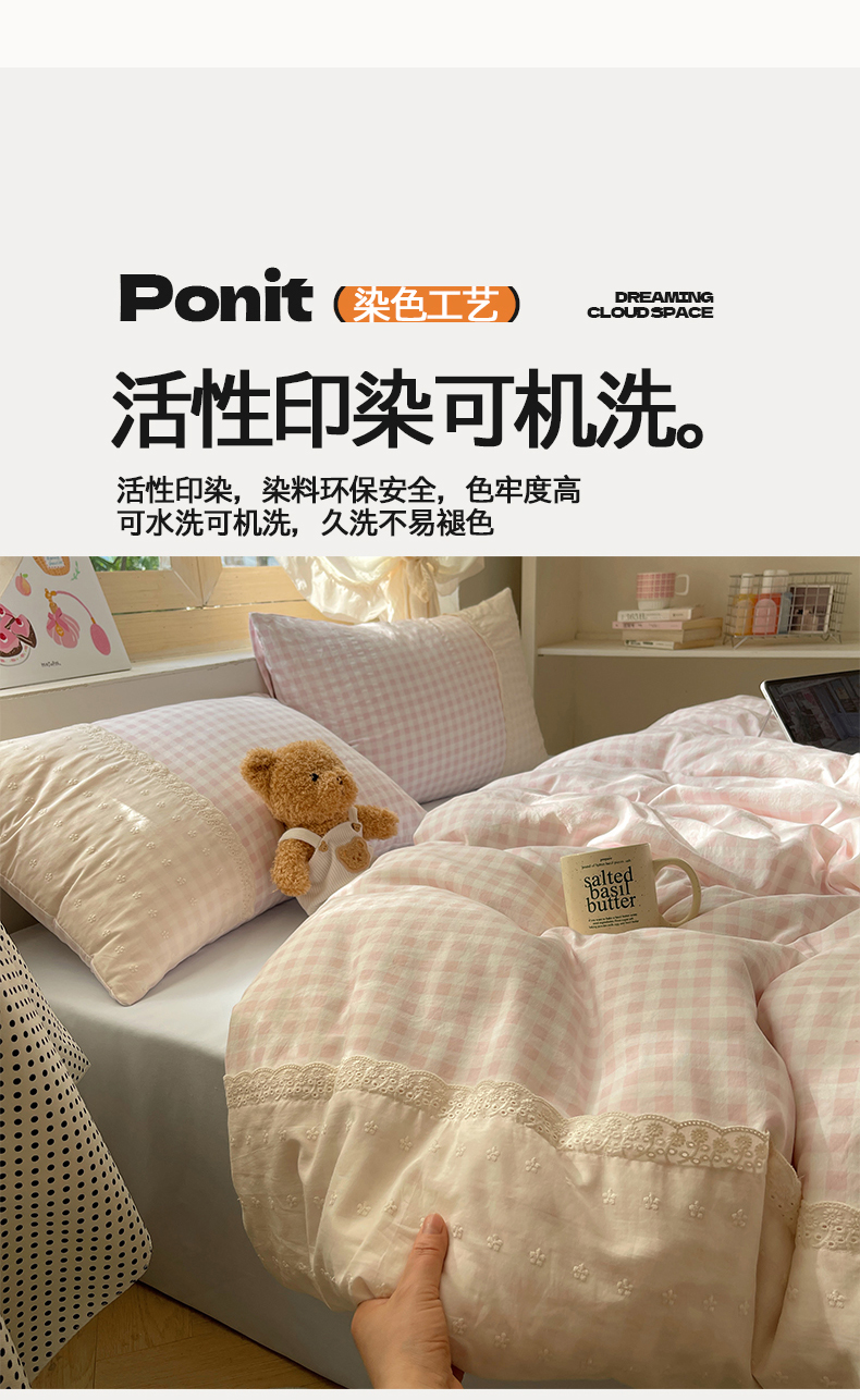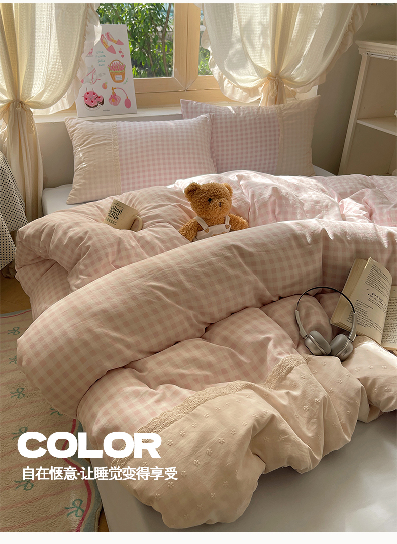 当前位置: 91家纺网 > 商品网购 > 床品套件 > 四件套 > 水洗棉四件套 > 桃心家居 2025新款云感水洗棉蕾丝花边四件套 水洗棉花边-蕾丝粉格蓝