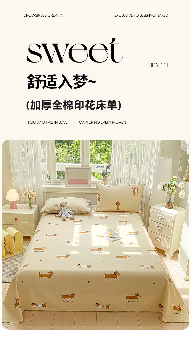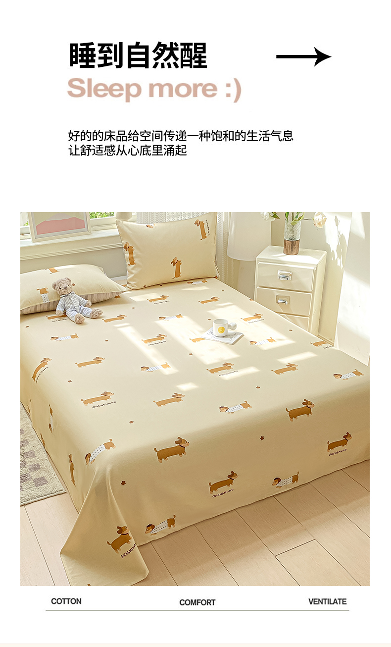 黑马家居 2025新款全棉纯棉印花单床单床单单件 腊肠犬