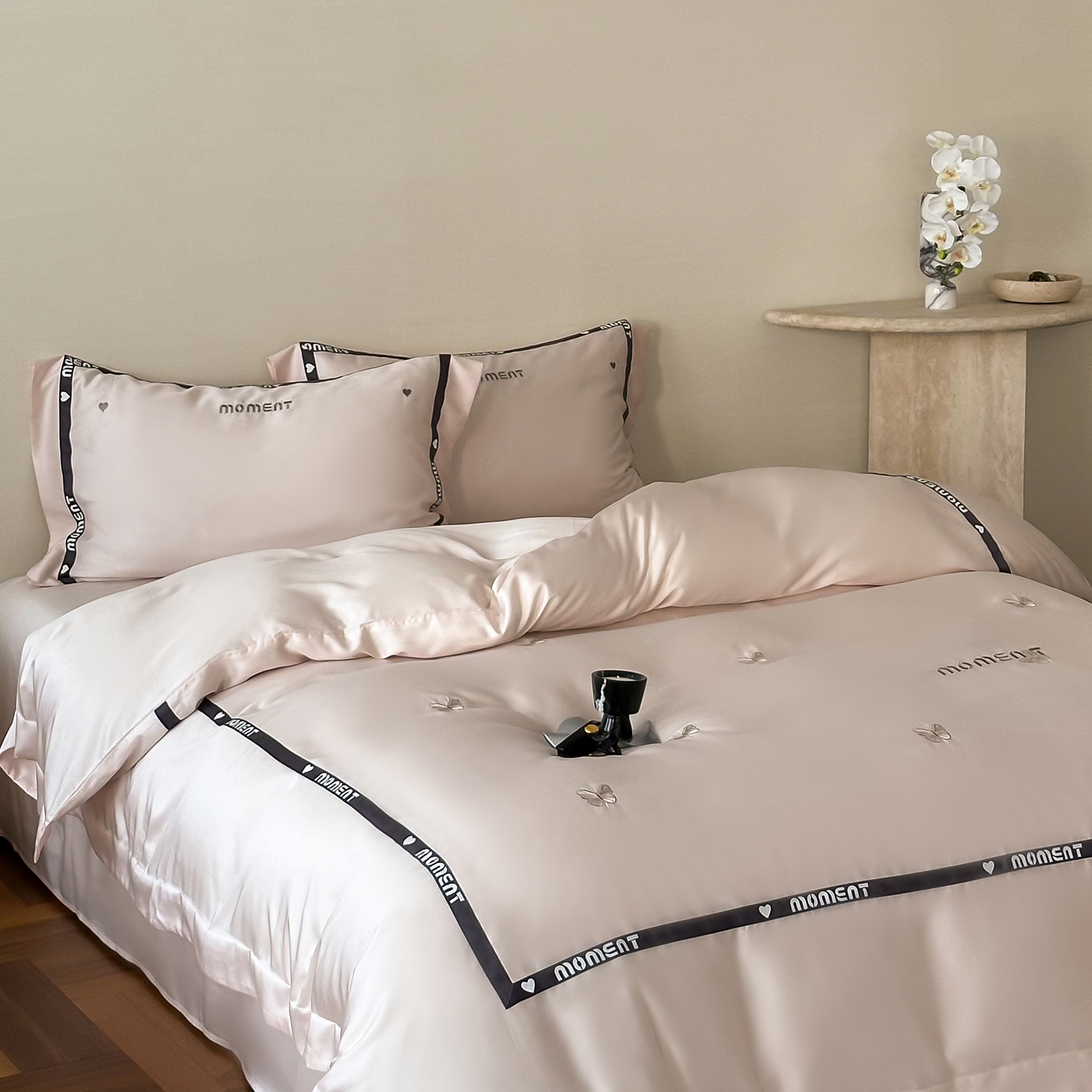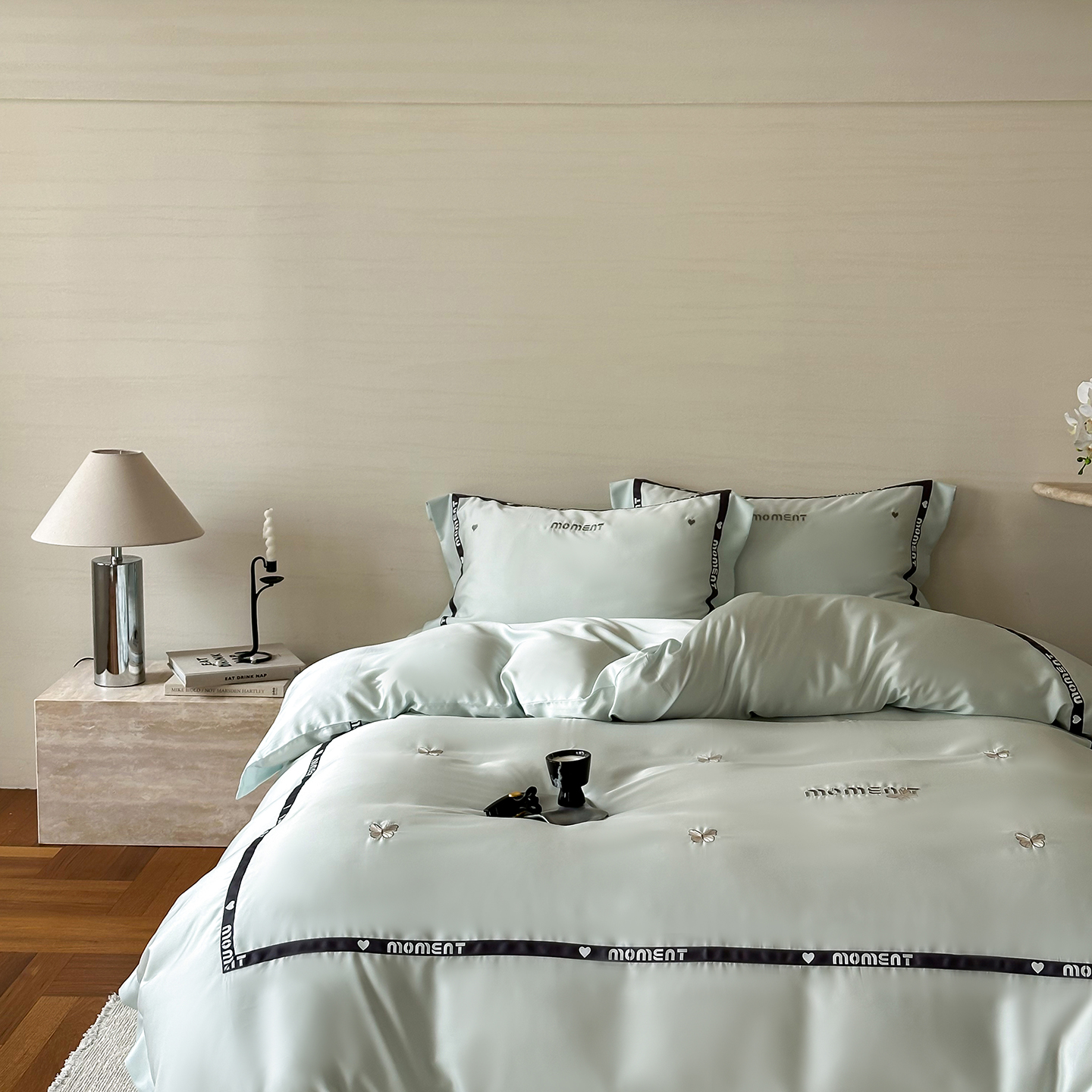 禾时 2025新款60S奥地利进口兰精天丝绣花黑边款四件套-蓓莉 蓓莉-蓝