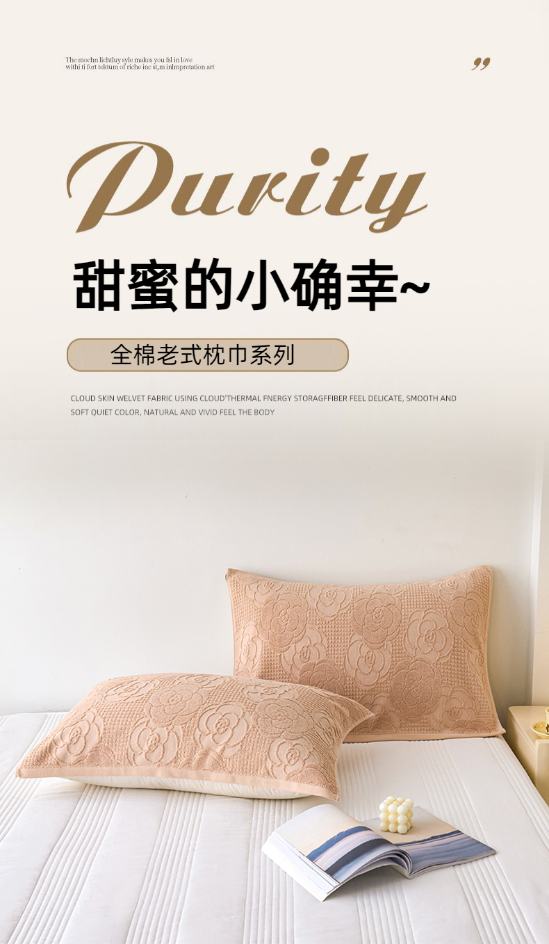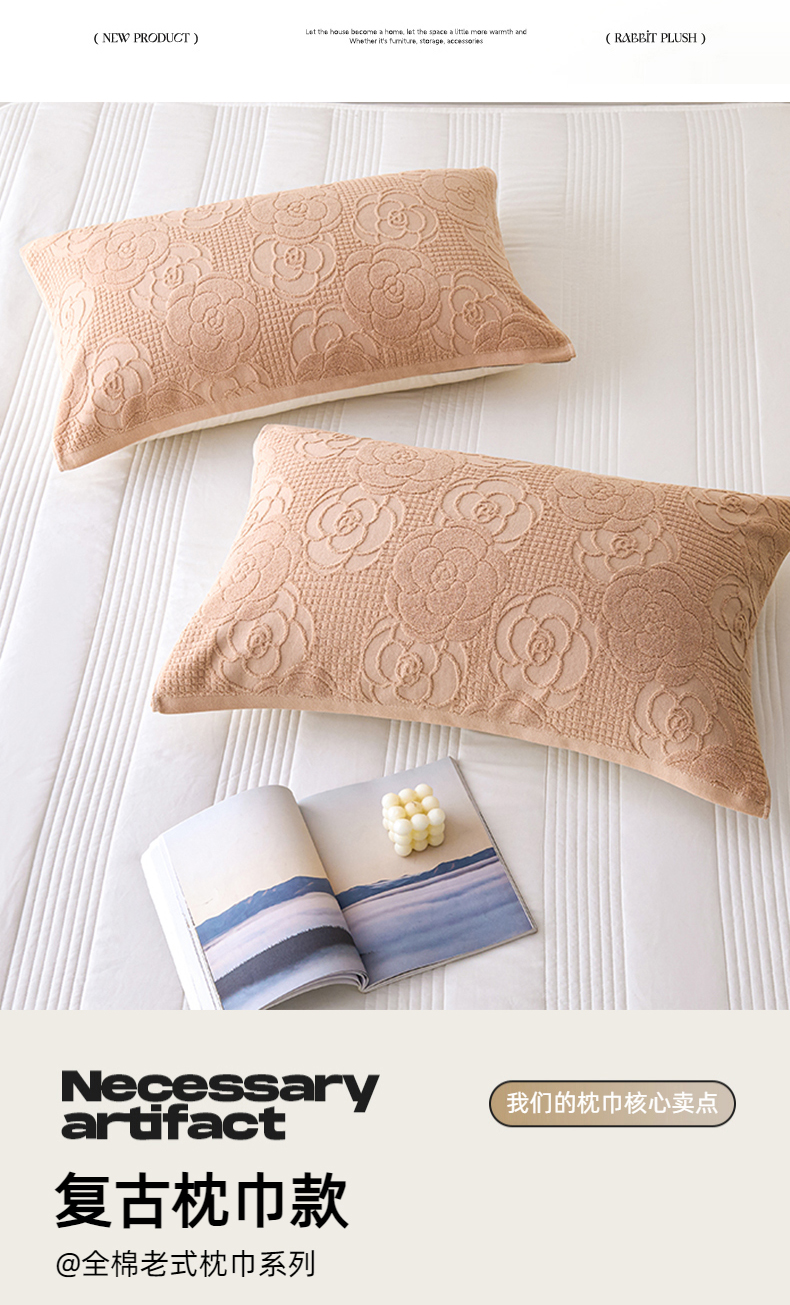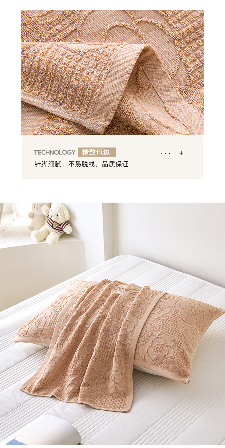 商品名称:悦然毛巾被 2025新款全棉纯棉老式枕巾毛圈款 玫瑰物语咖啡