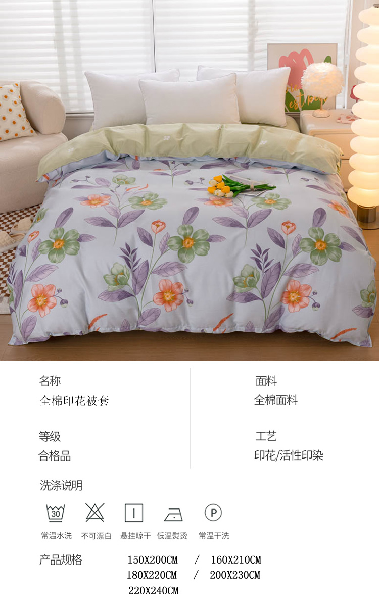 商品名称:贝兰仙奴 2025春夏新款全棉纯棉12868印花单被套 被套单件 花房迷香兰