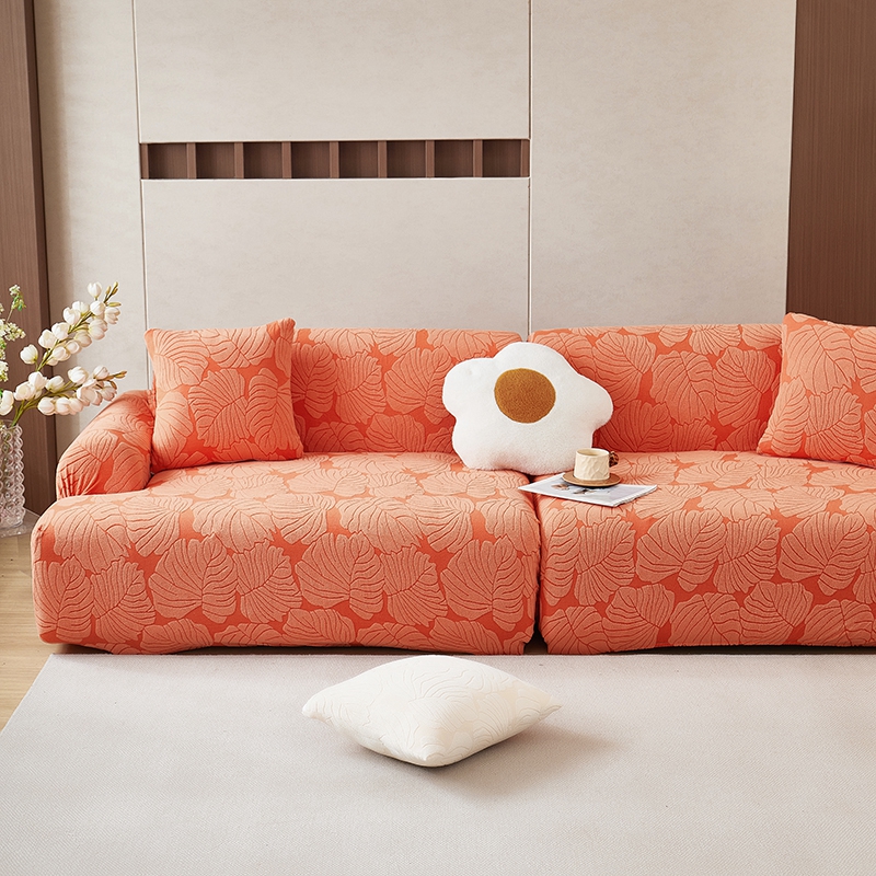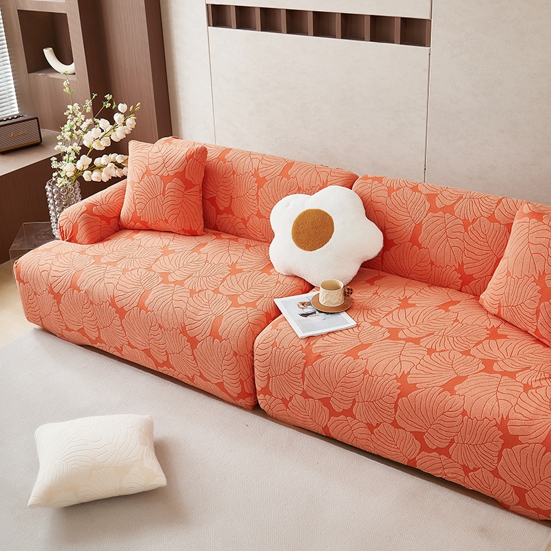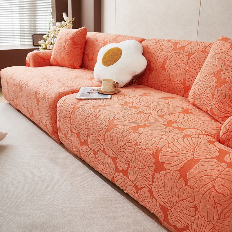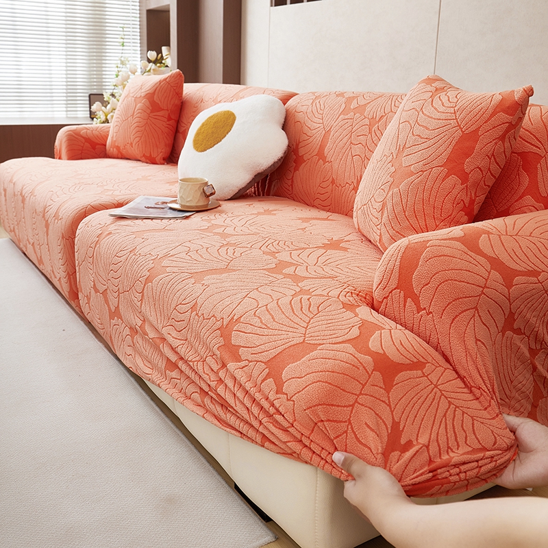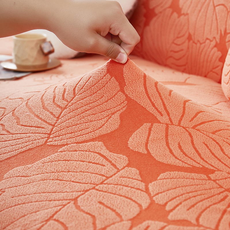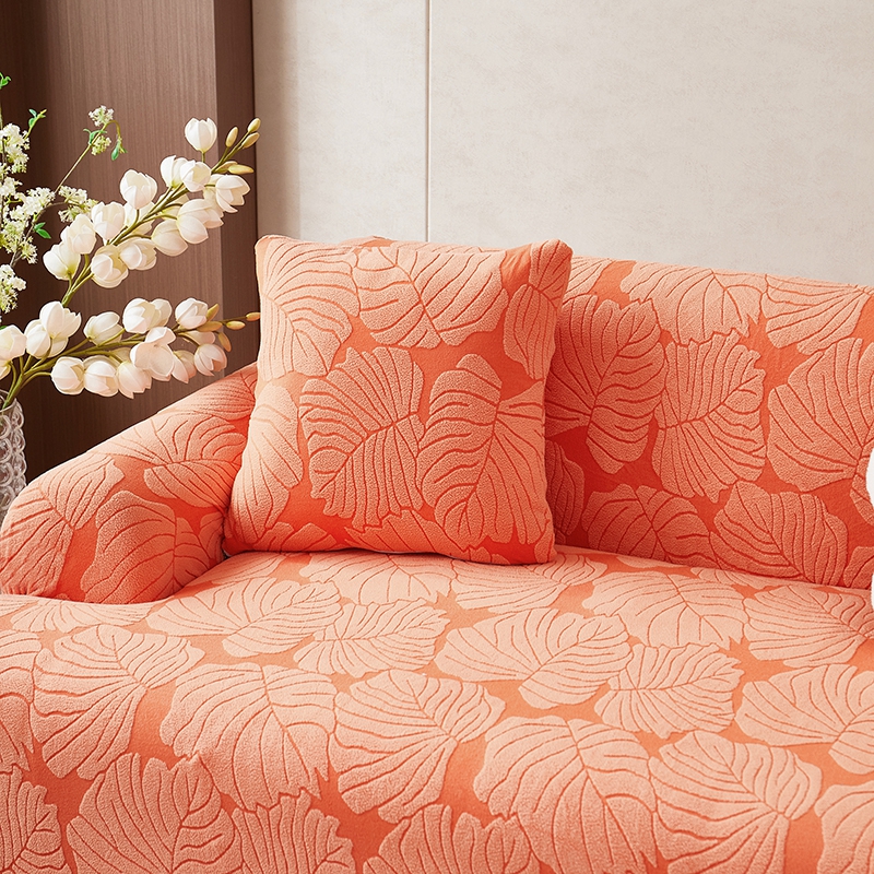 丝绮鹿 2025新款羊羔绒直排松紧款沙发套-枫叶 枫叶-亮橙