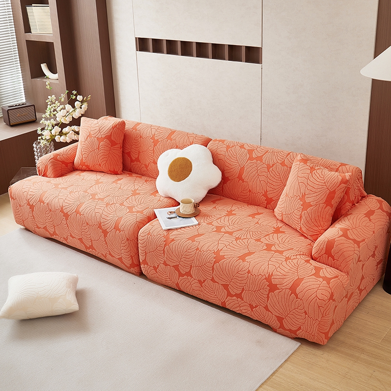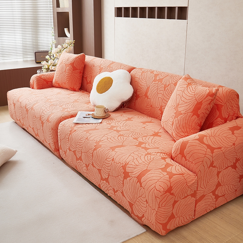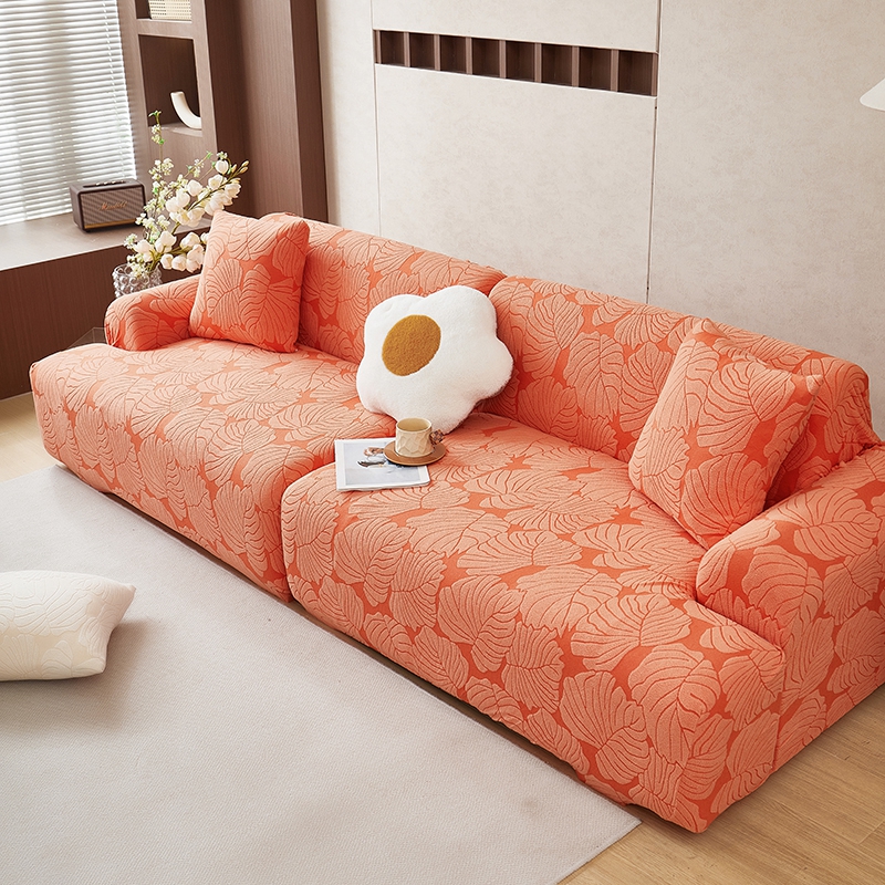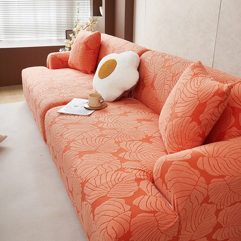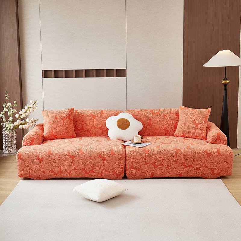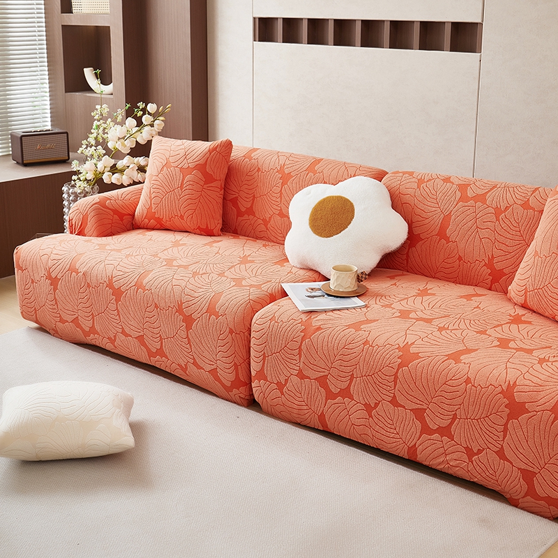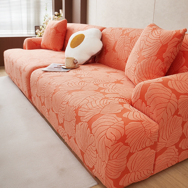 丝绮鹿 2025新款羊羔绒直排松紧款沙发套-枫叶 枫叶-亮橙