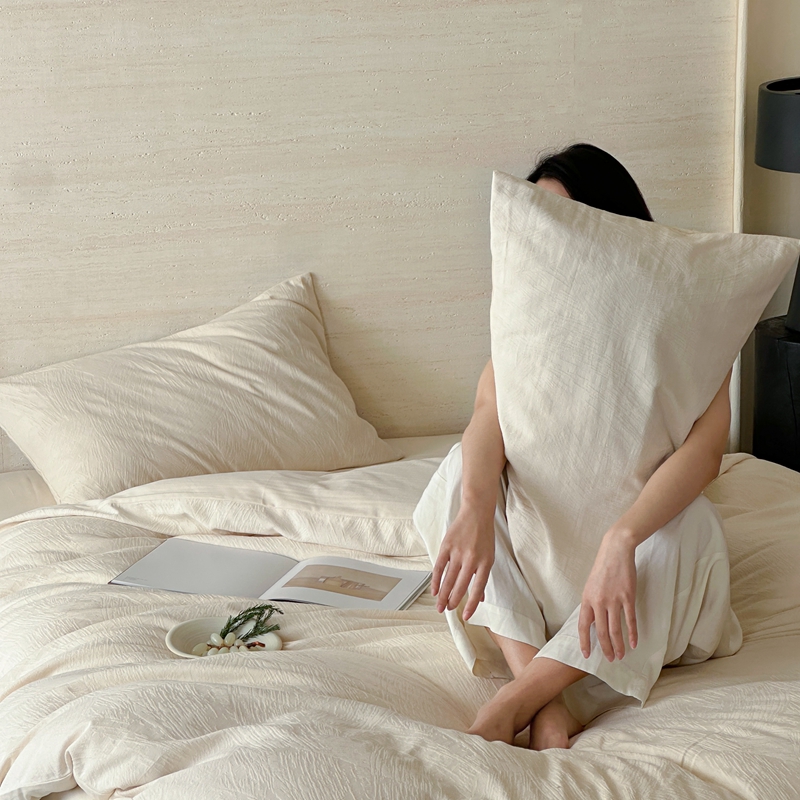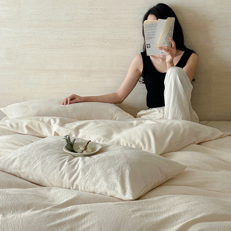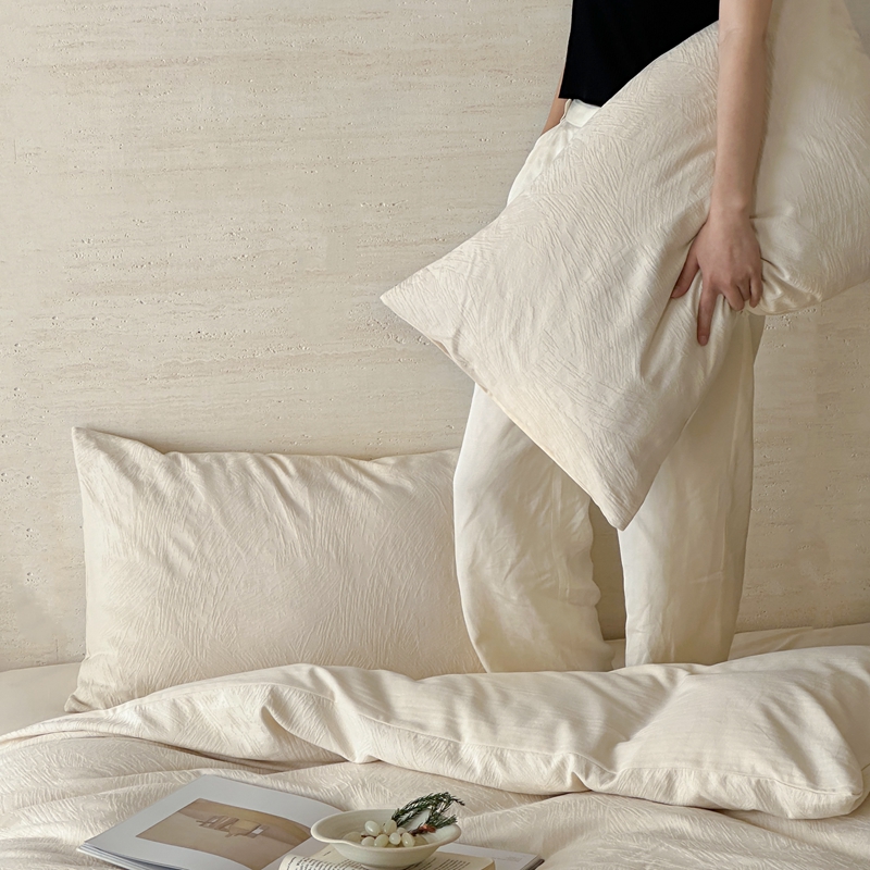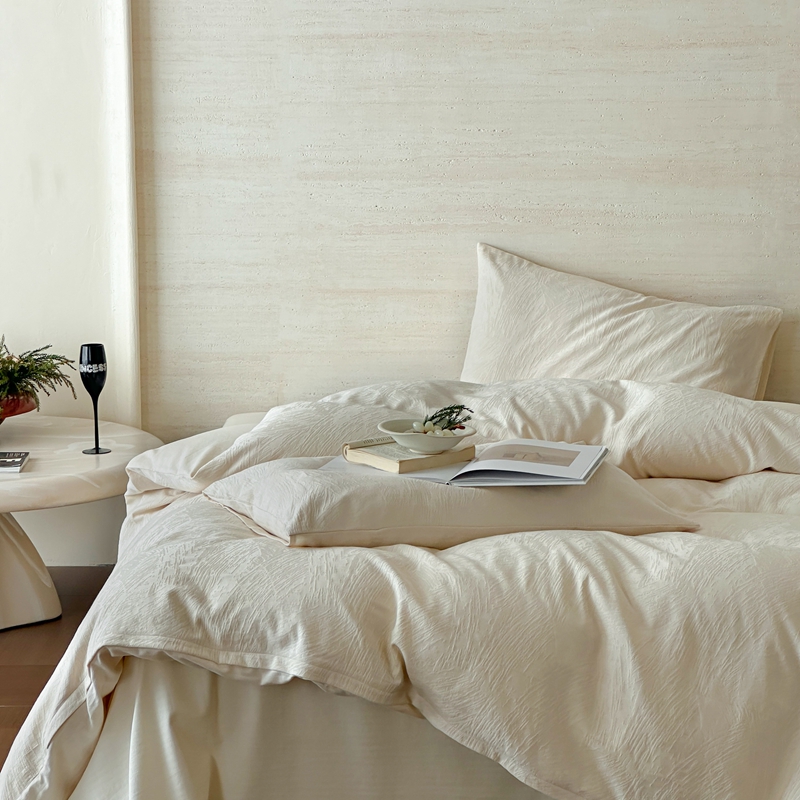 商品名称:梦享生活家居 2025新款全棉纯棉三层肌理提花四件套-素写系列(会员减10) 素写-奶油白