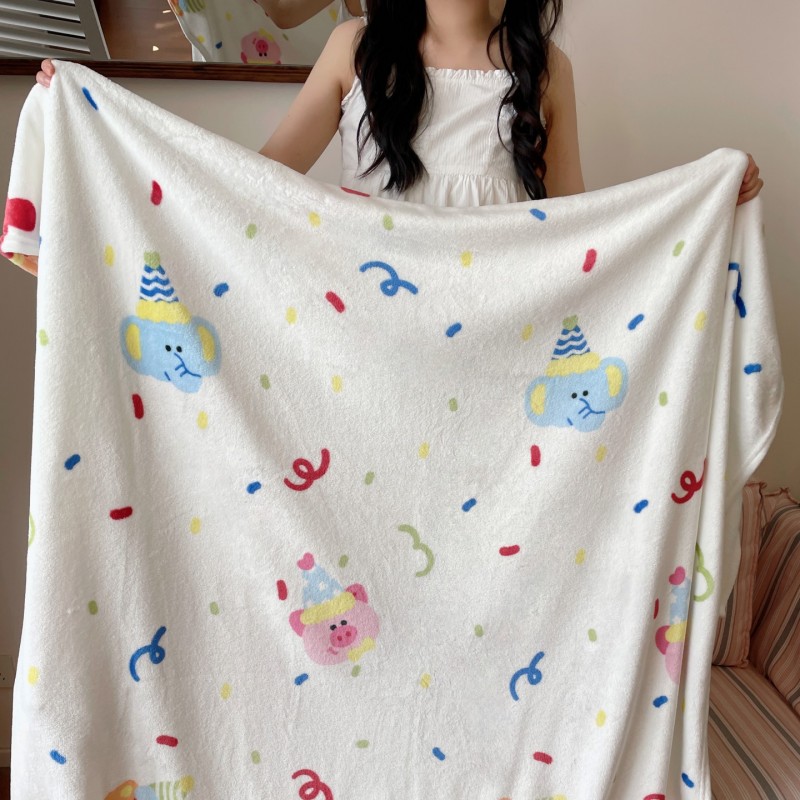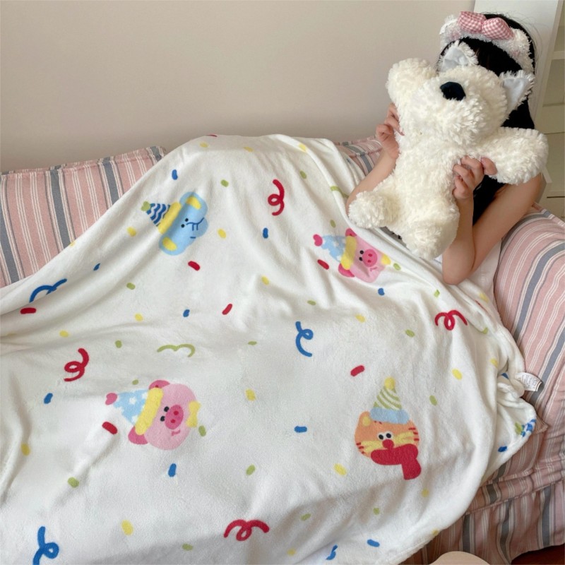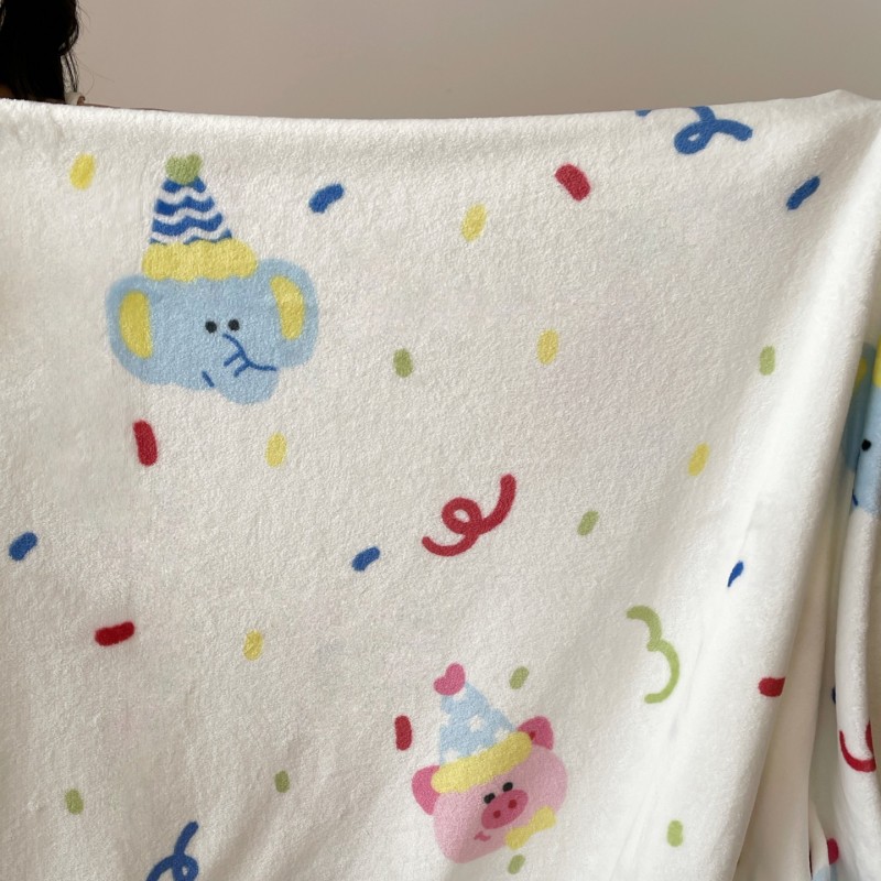商品名称:顾里家纺 2025新款ins少女奶油治愈双面牛奶绒毯 动物派对