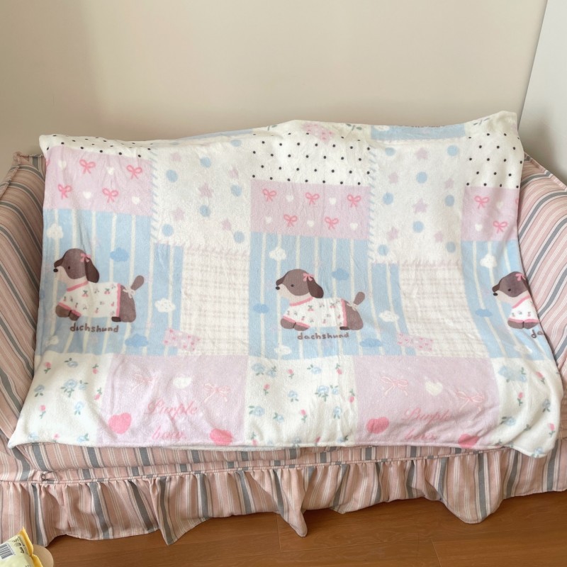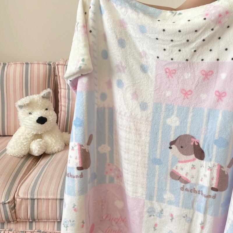 商品名称:顾里家纺 2025新款ins少女奶油治愈双面牛奶绒毯 拼接腊肠狗