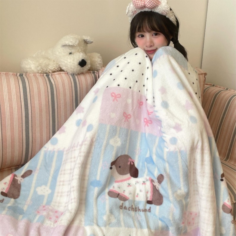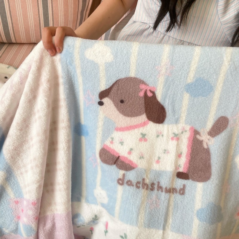 顾里家纺 2025新款ins少女奶油治愈双面牛奶绒毯 拼接腊肠狗