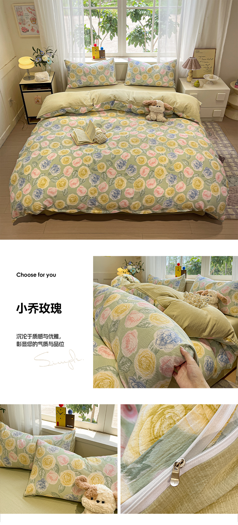 当前位置: 91家纺网 > 商品网购 > 床品套件 > 四件套 > 全棉普通四件套 > 王朝国际 2026爆款皱皱双层纱四件套小乔玫瑰