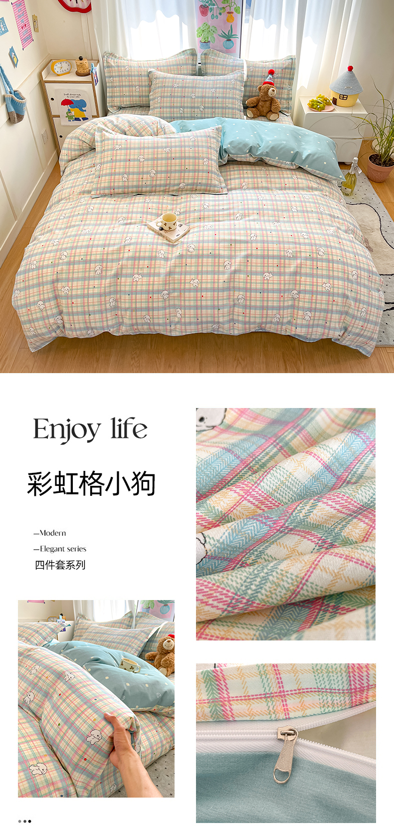 当前位置: 91家纺网 > 商品网购 > 床品套件 > 四件套 > 全棉普通四件套 > 2025新款全棉印花小清新单品系列-四件套(提供买家秀)彩虹格小狗