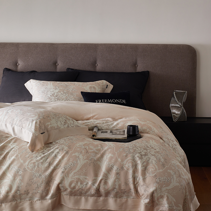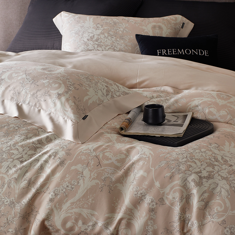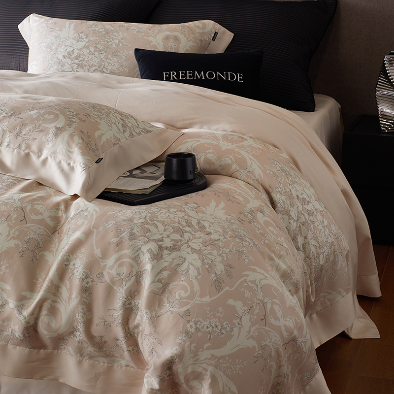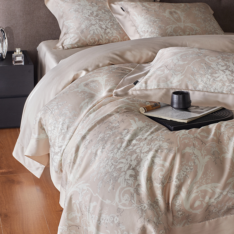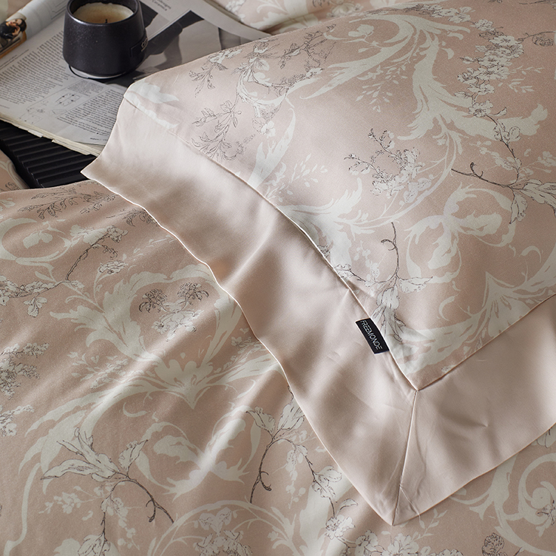 蕾诺家纺 2025新款60支进口奥地利兰精天丝数码印花四件套 娜塔莎-贝壳粉